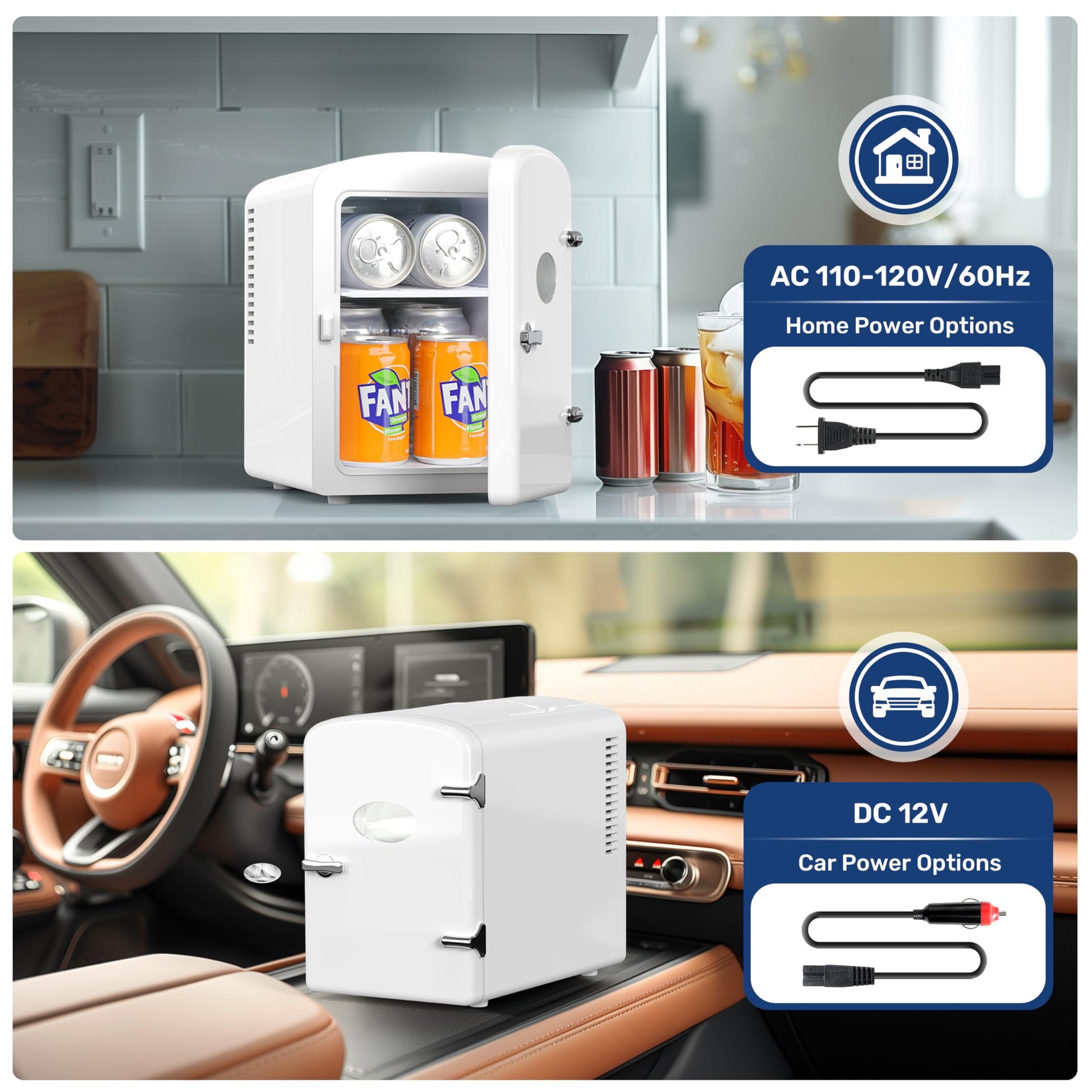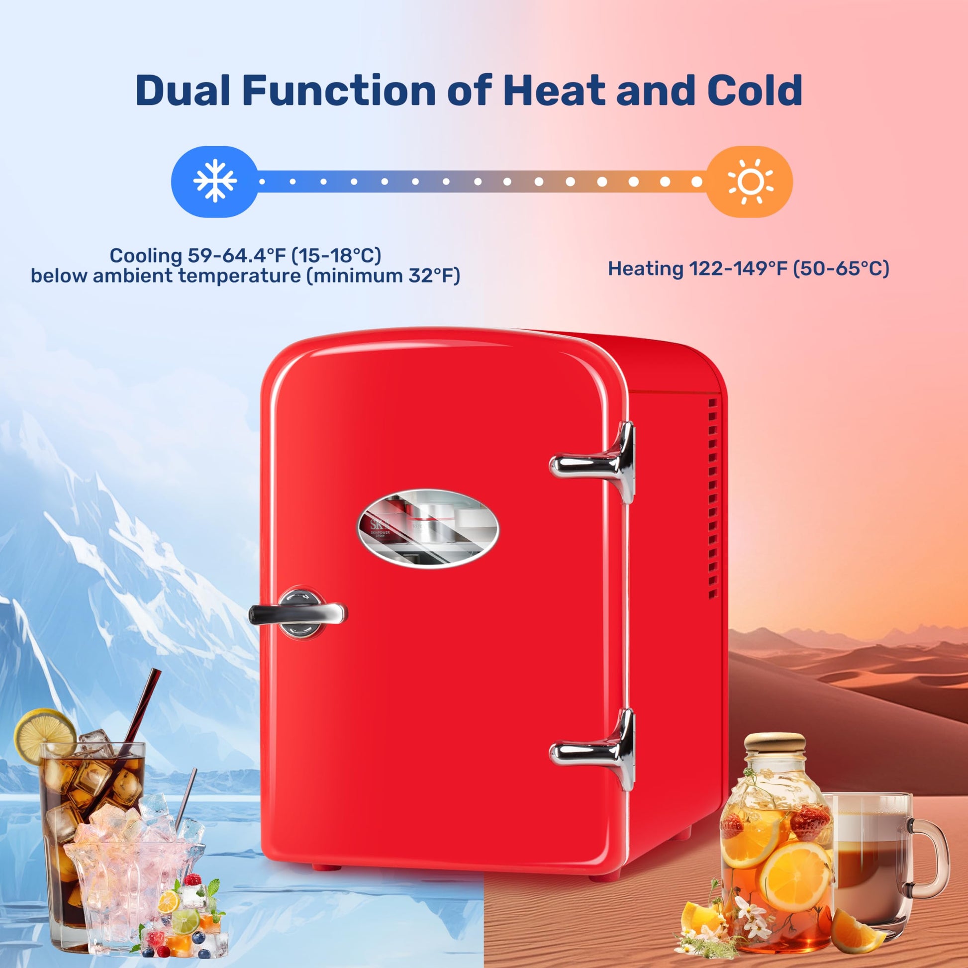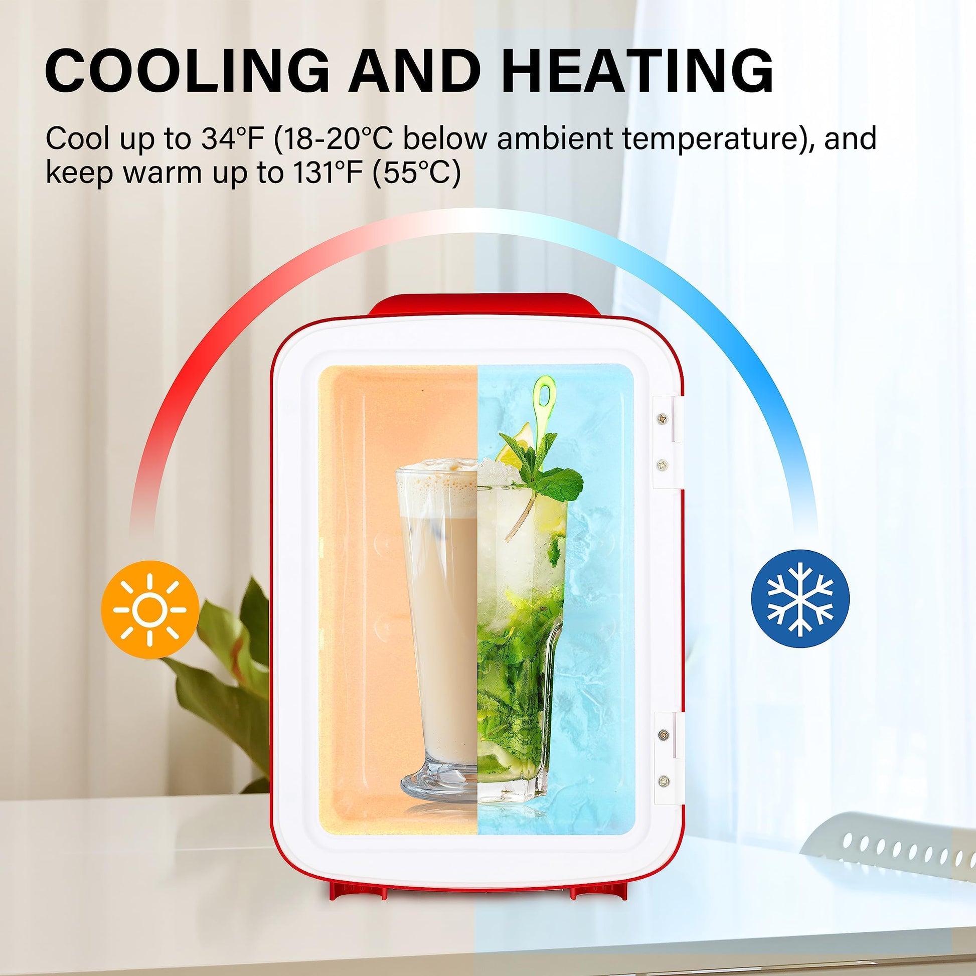 - Adjustable thermostat control: Set the mini fridge to cool or warm just flip a switch! Cool up to 34°F (18-20°C below ambient temperature) and keep warm up to 131°F (55°C), it works both in summer and winter.