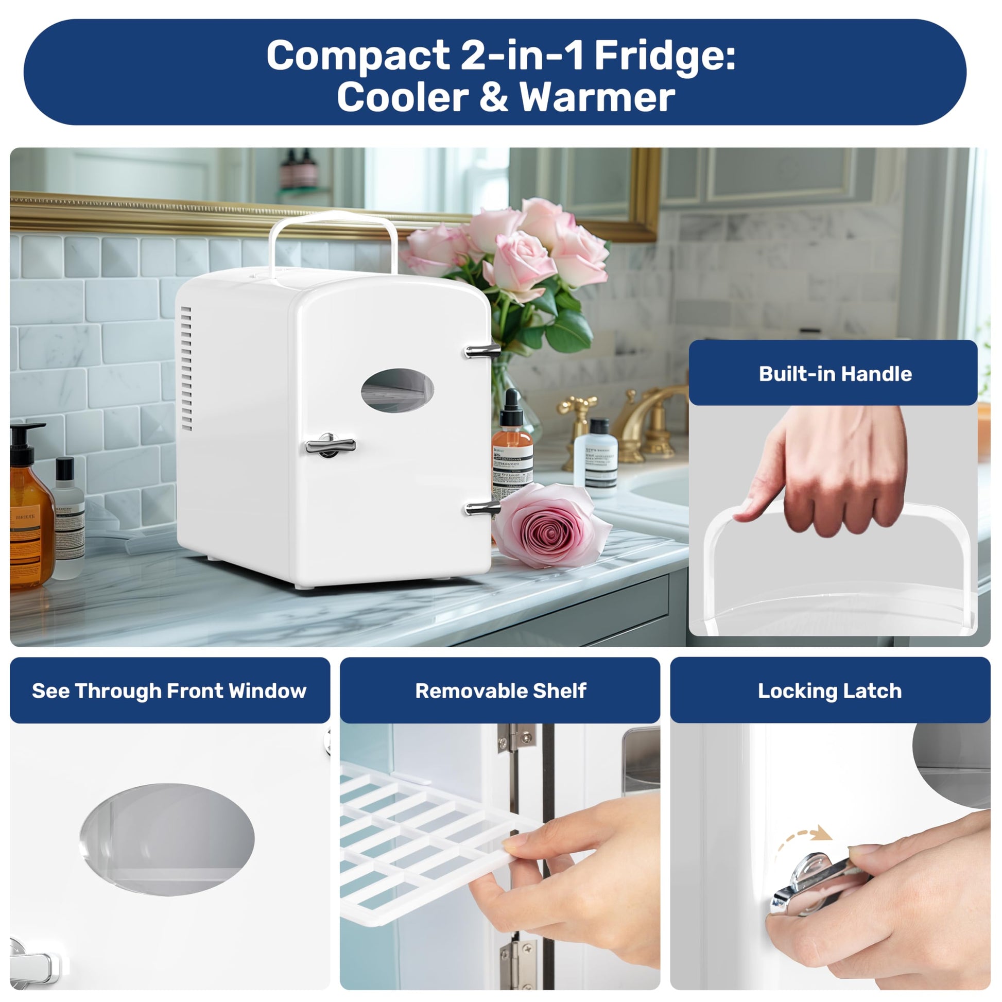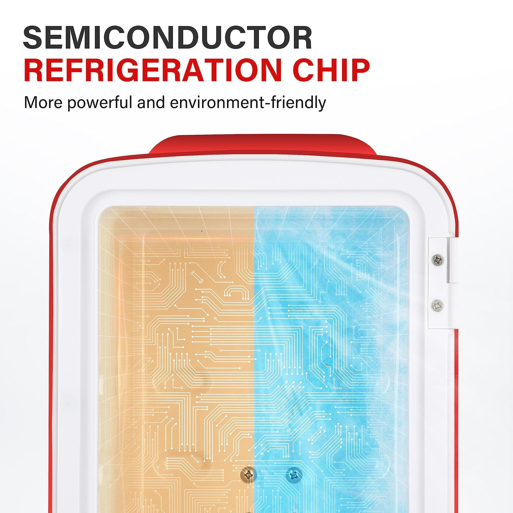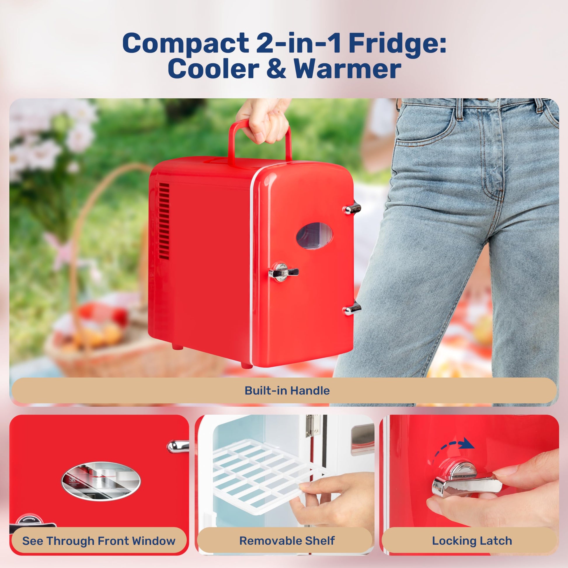 - Adjustable thermostat control: Set the mini fridge to cool or warm just flip a switch! Cool up to 34°F (18-20°C below ambient temperature) and keep warm up to 131°F (55°C), it works both in summer and winter.