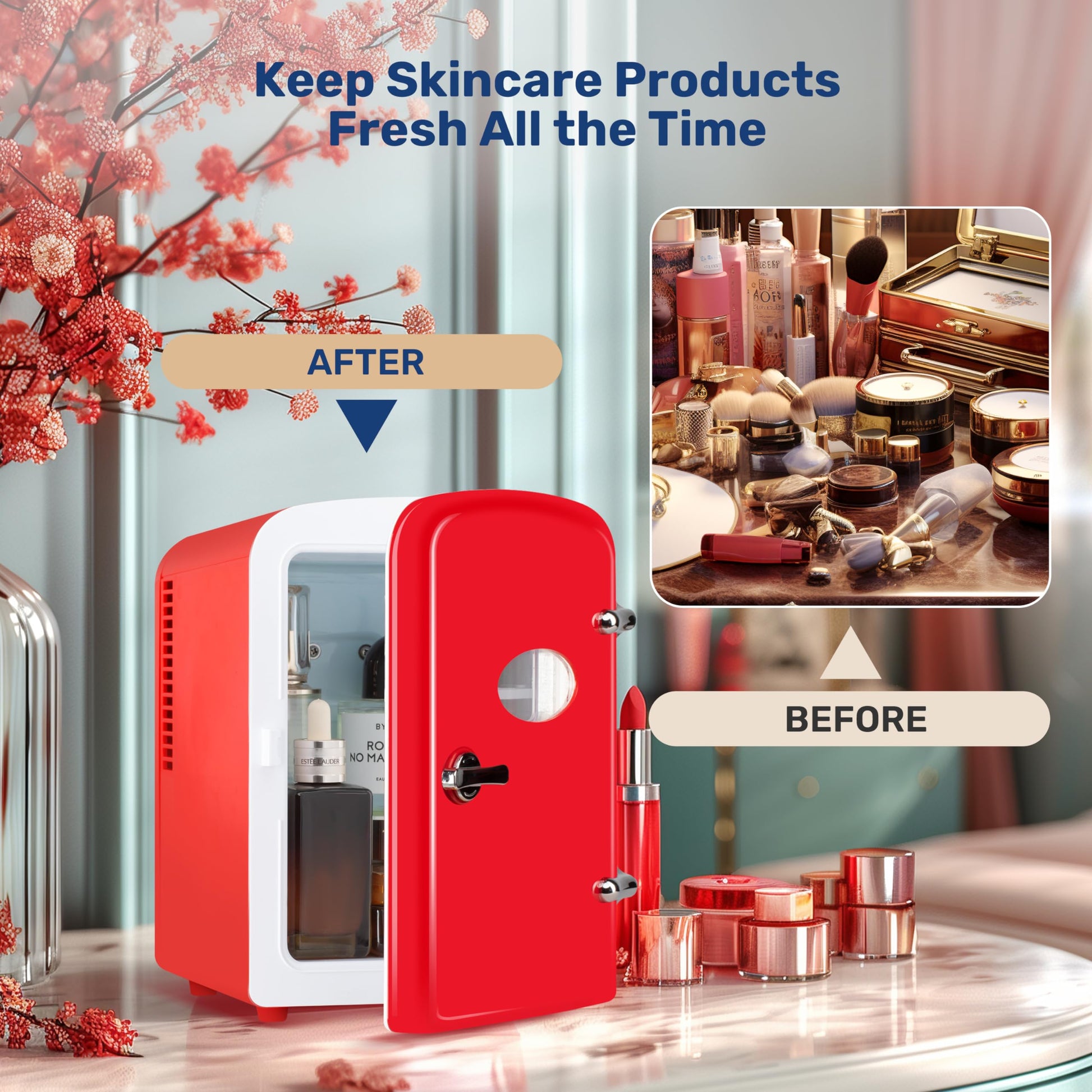 - Compact size with 4L capacity: Can store up to six 12 oz cans. the interior size is 5.5*5.1*8.1 inches make it fits on the corner of the bookshelf or kitchen.