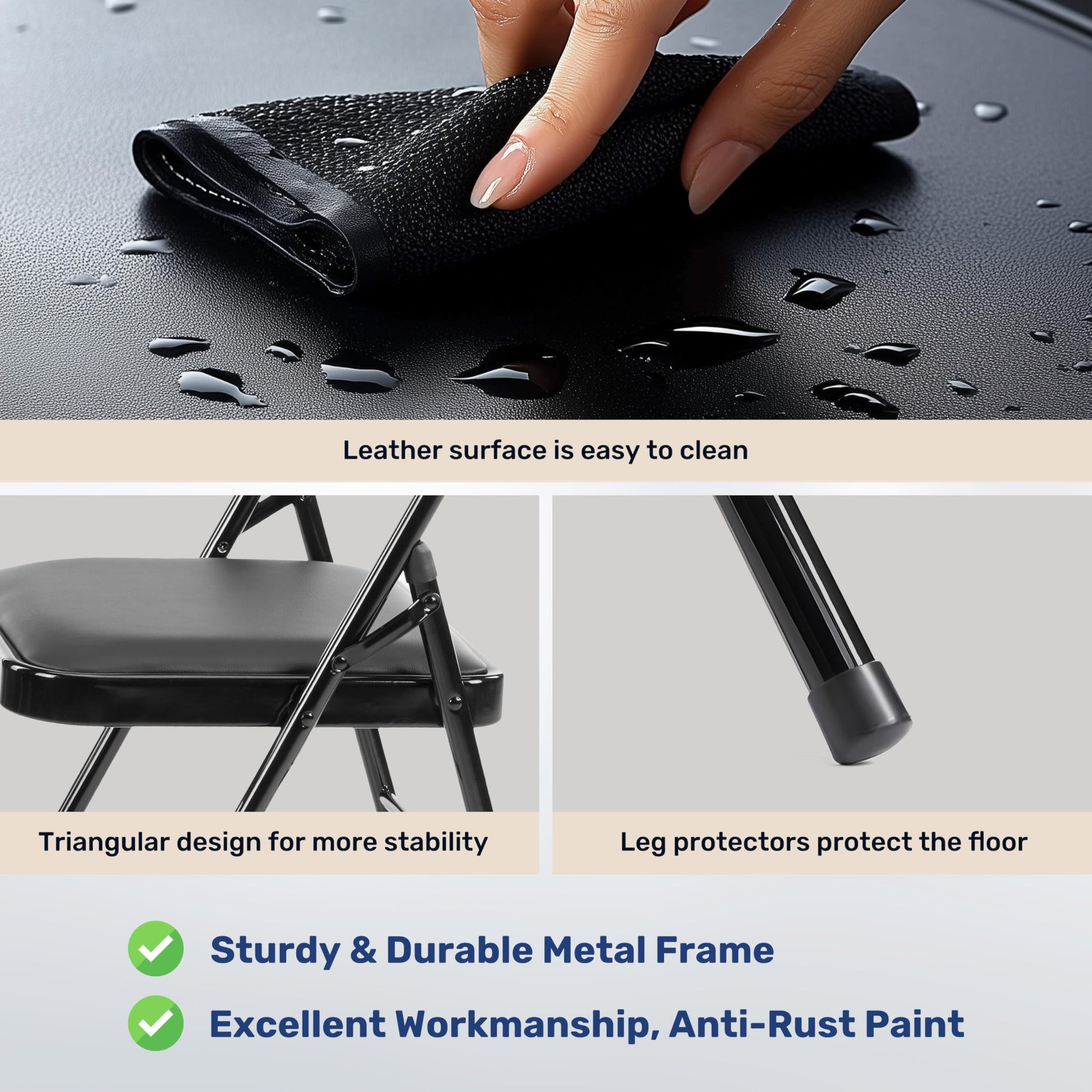- Comfortable seat: The folding chair's backrest and seat cushion feature high-density sponge padding, giving strong support for your back and relieving spinal pressure. The high-quality PU leather gives an excellent touch and make it easy to maintain