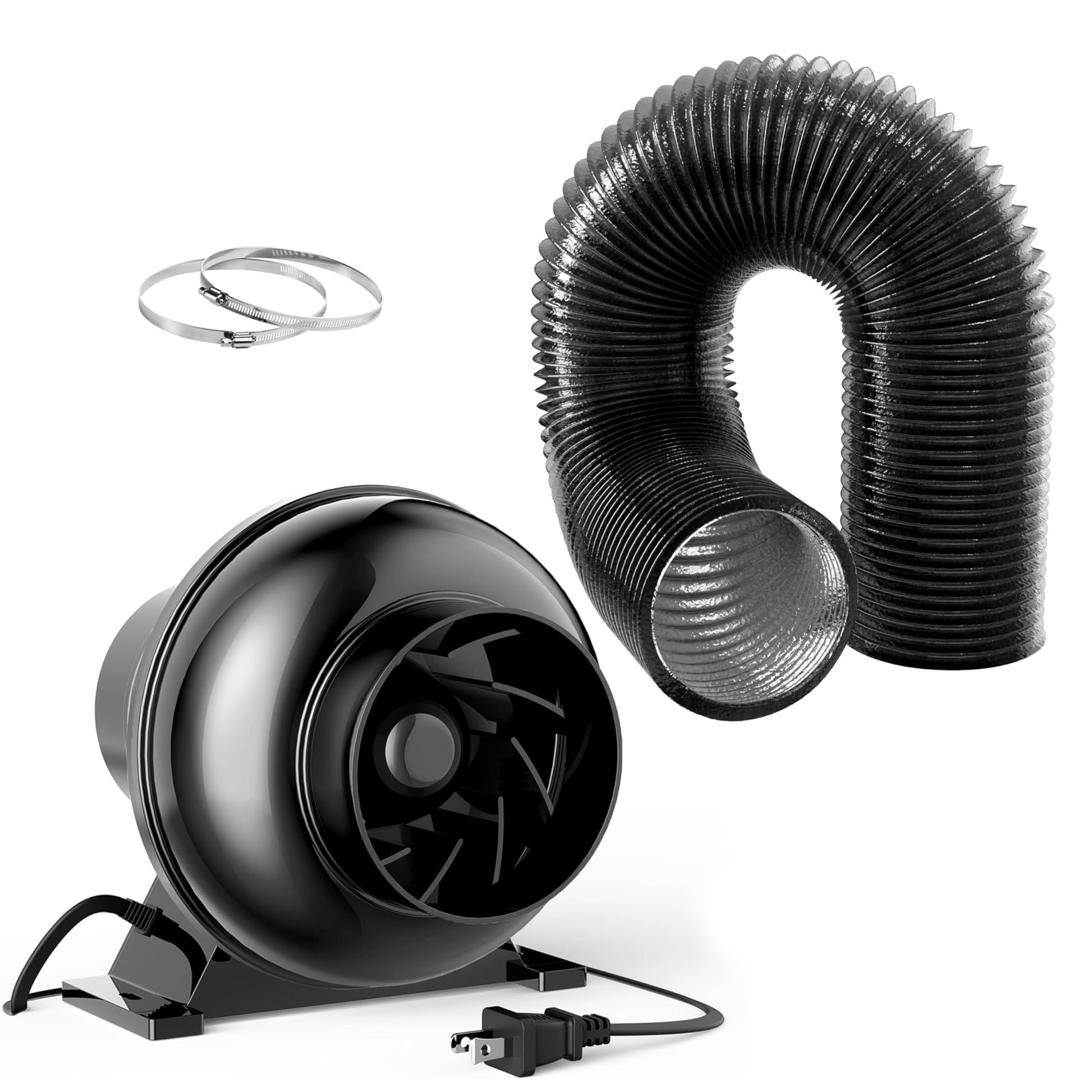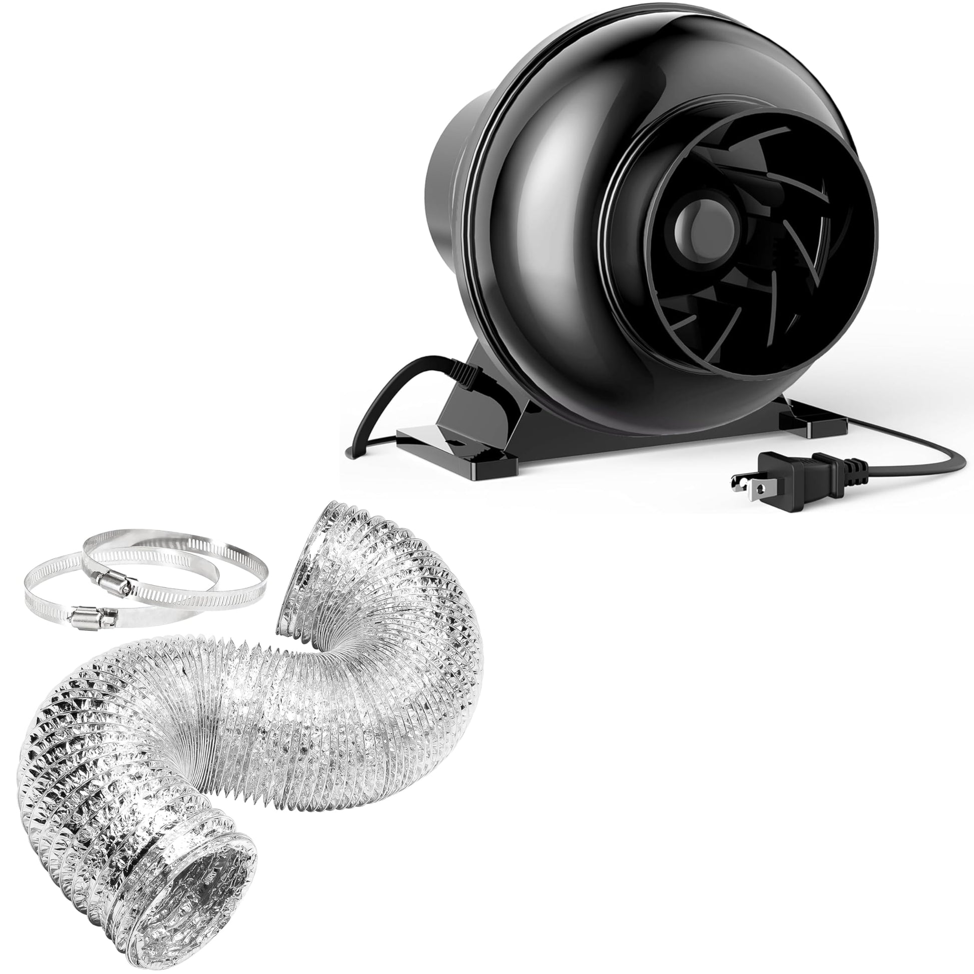YSSOA 4 Inch 195 CFM Inline Duct Ventilation Fan Exhaust Fan, 8 Feet Long Flexible Dryer Vent Hose Aluminum Ducting for Grow Tent Air Circulation, Attic, Greenhouse