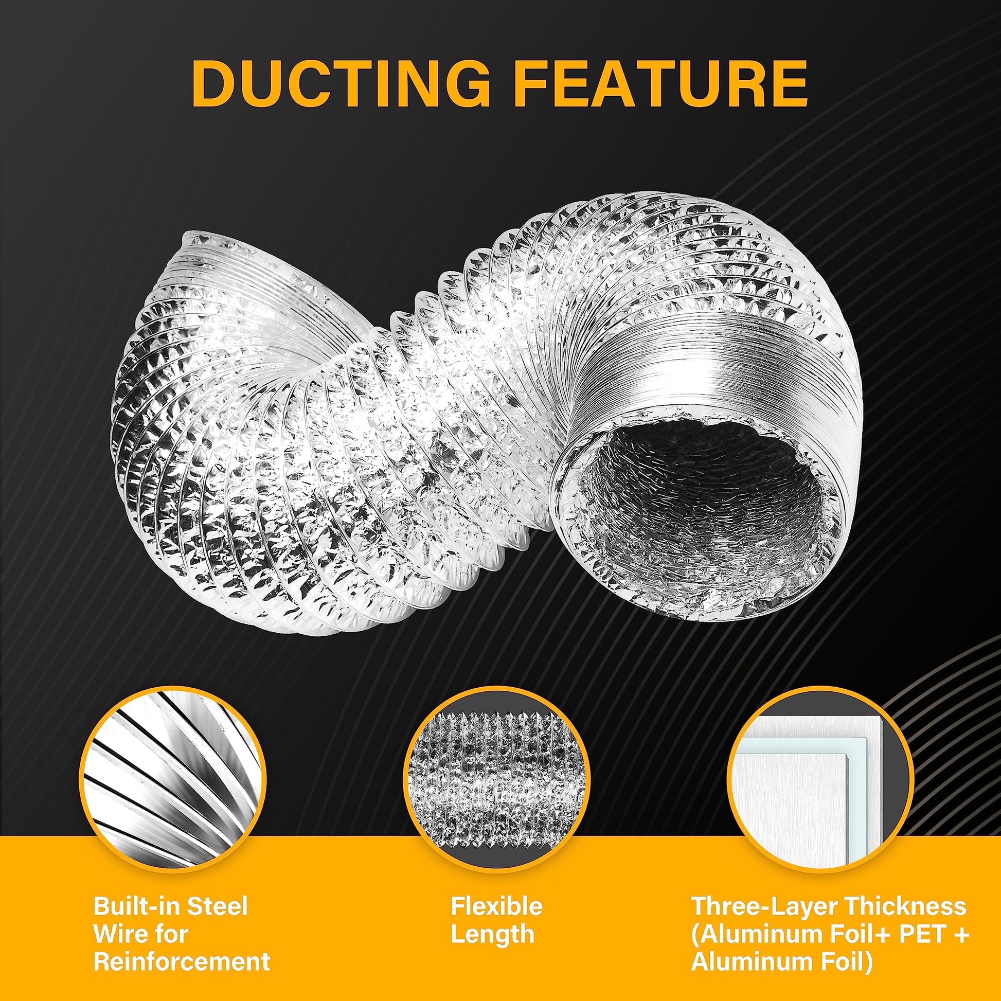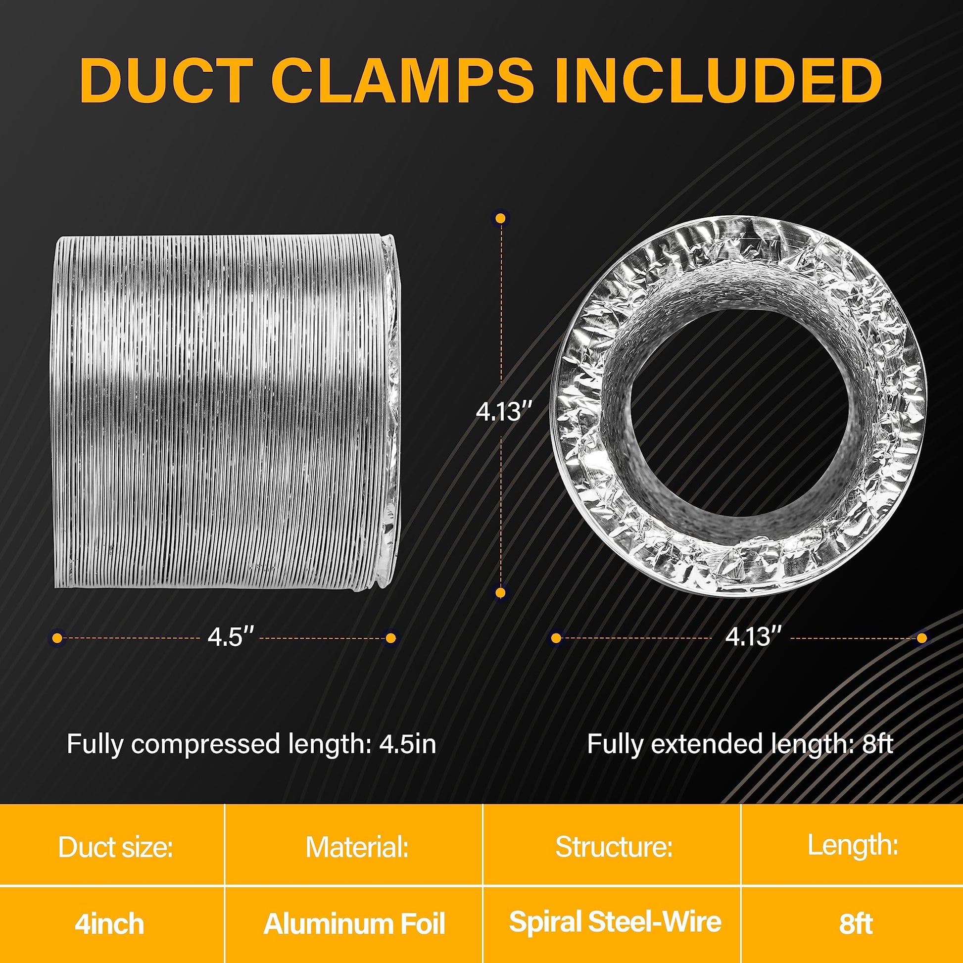 YSSOA 4 Inch Inline Ventilation Fan and Flexible Ducting Dryer Vent Hose for Heating, Cooling, Hydroponics, Grow Tent