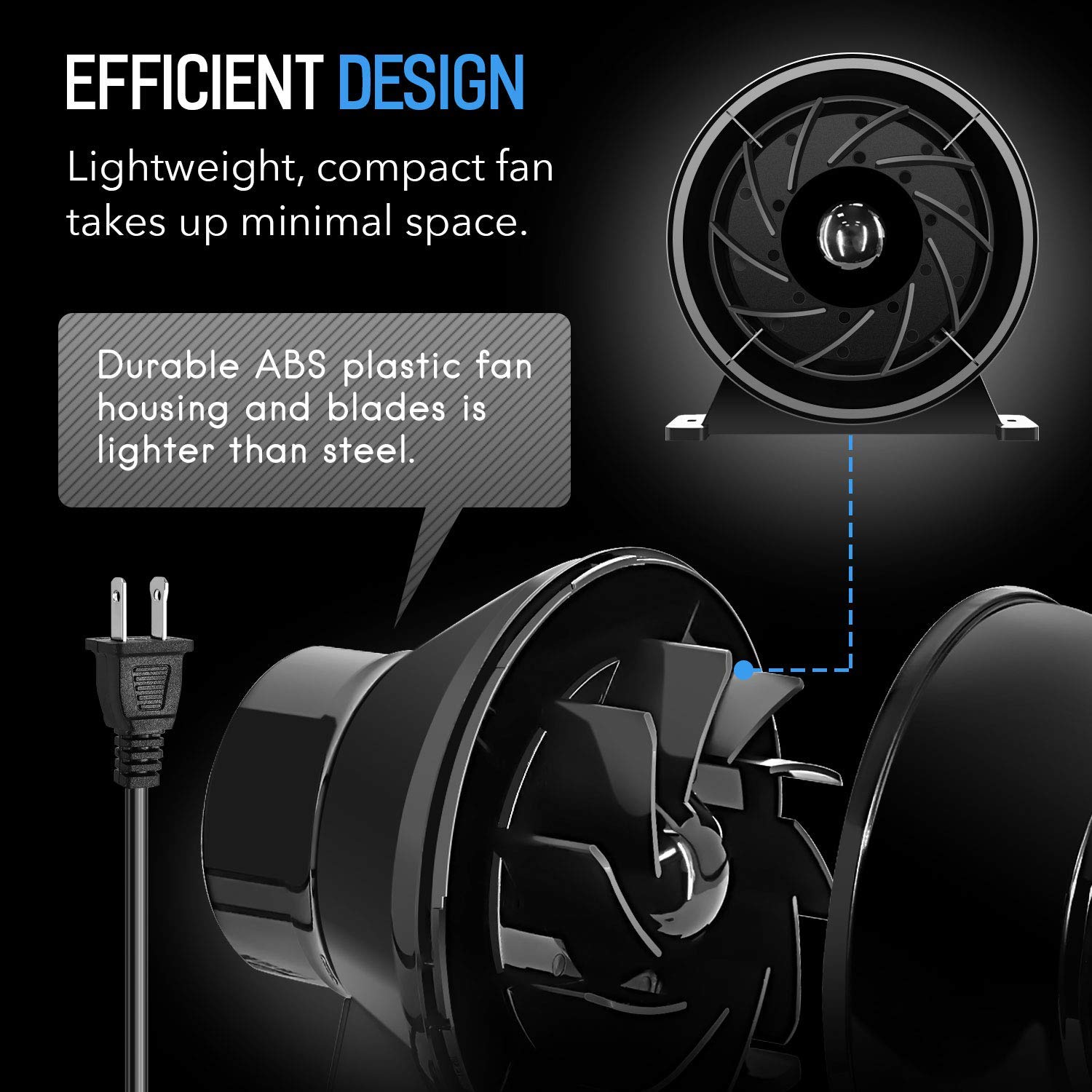- Premium design: Lightweight and compact fan takes up minimal space and fits in any grow room. High-quality blades and efficient flow deflector increase airflow while realizing smooth, whisper-quiet operation