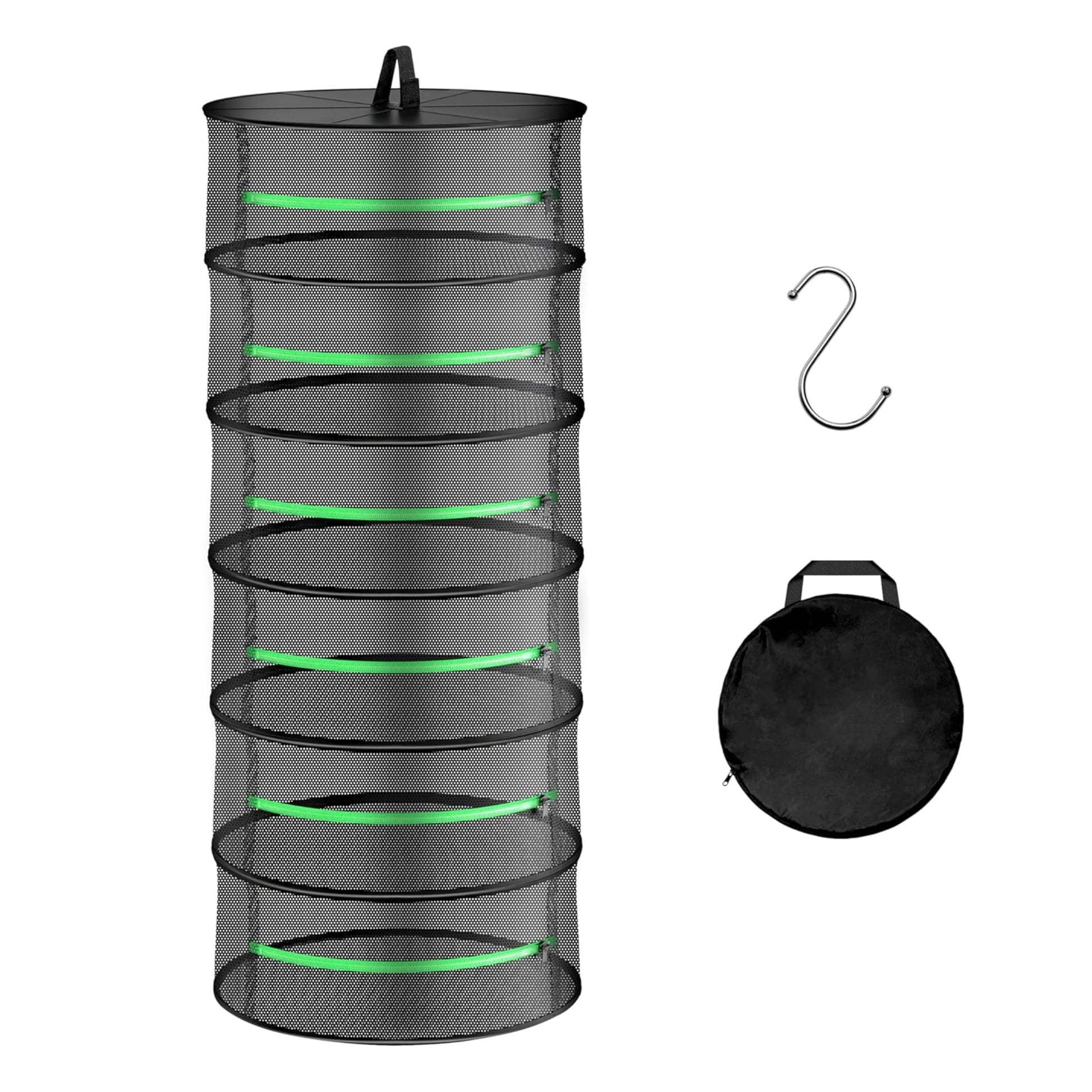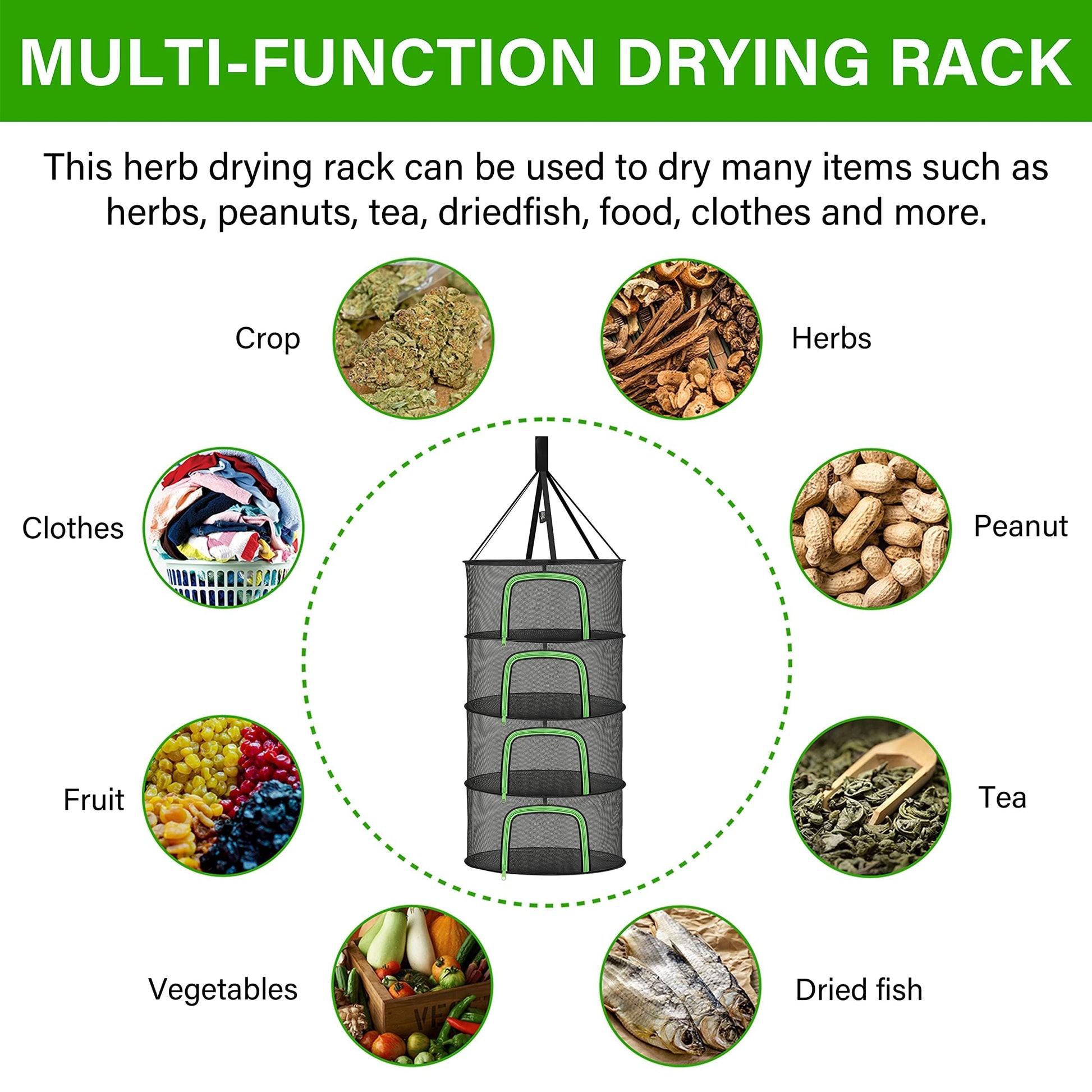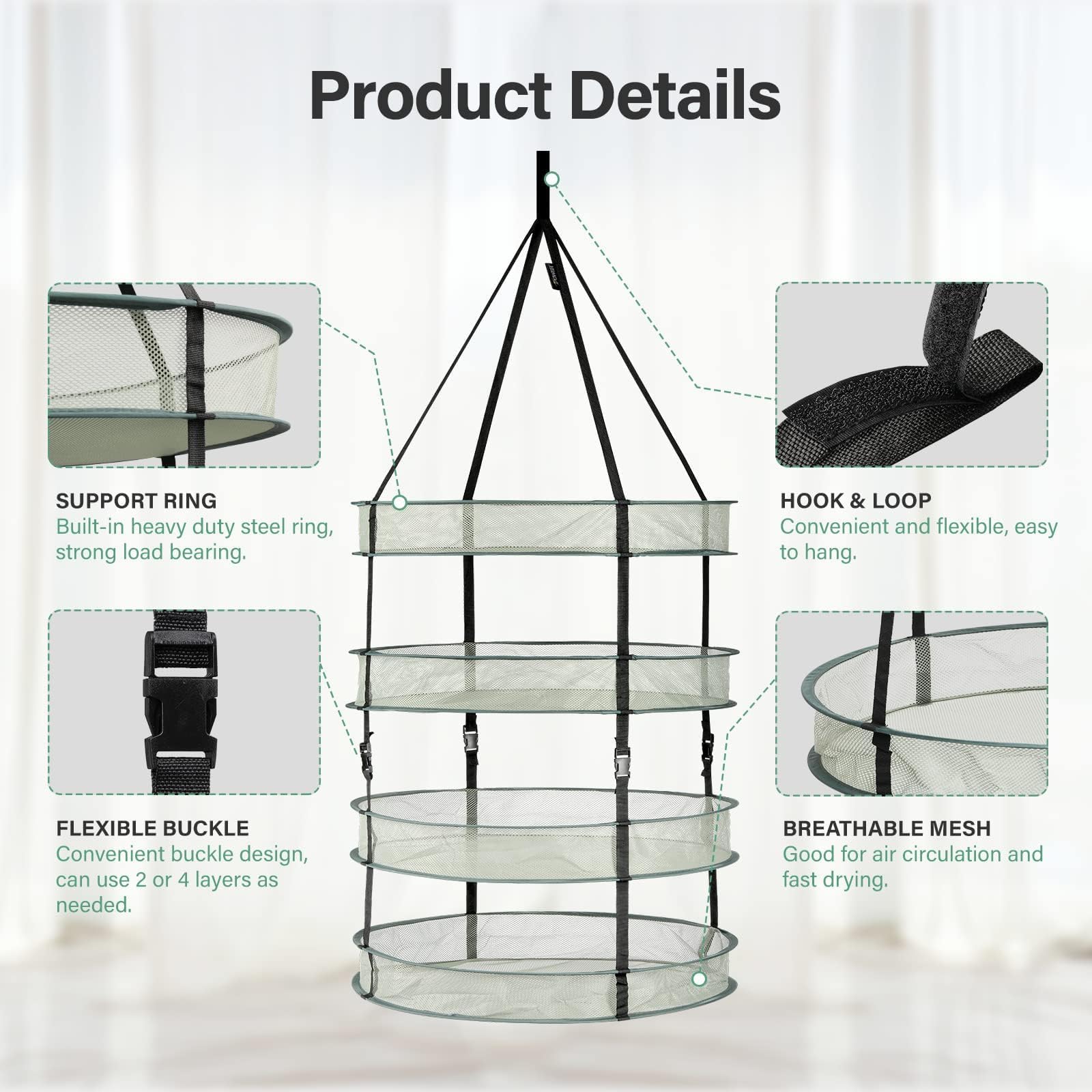 YSSOA 4 Layer 24'' Herb Drying Rack, Hanging Dry Mesh Folding Basket Dryer with Detachable Design & Hook for Plants, Herbs, Seeds and Buds in Grow Tent, Closet, Hydroponics, Garden Outdoor