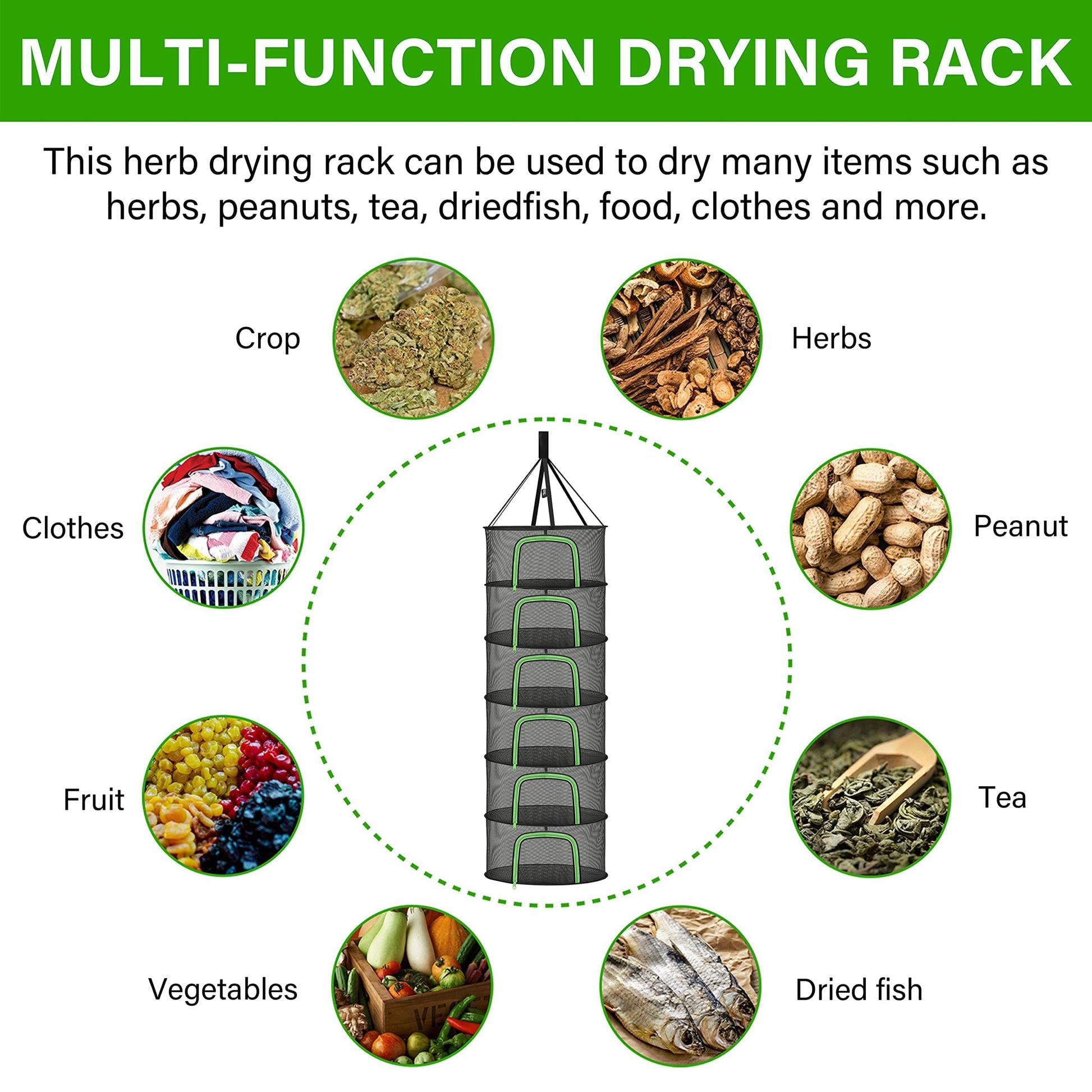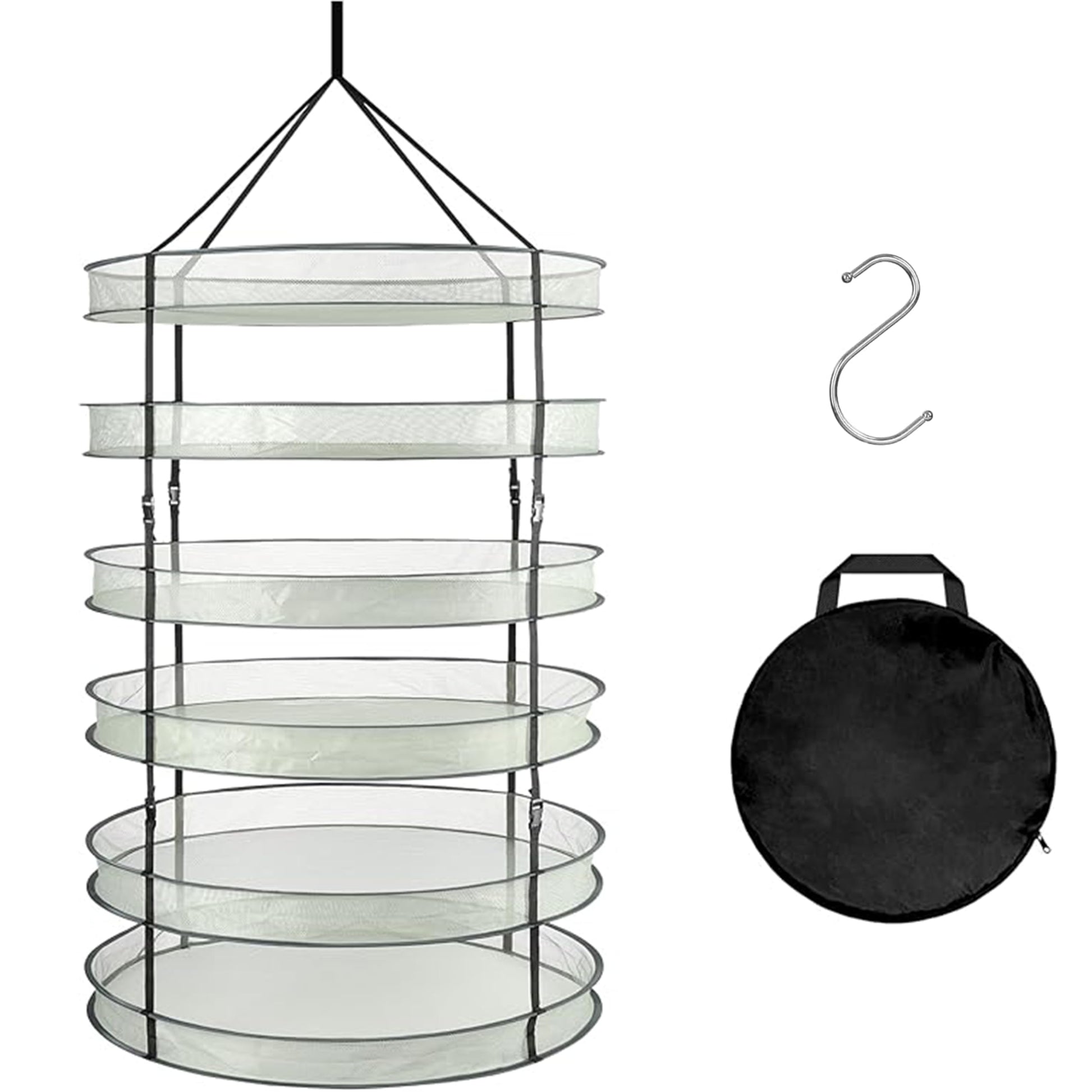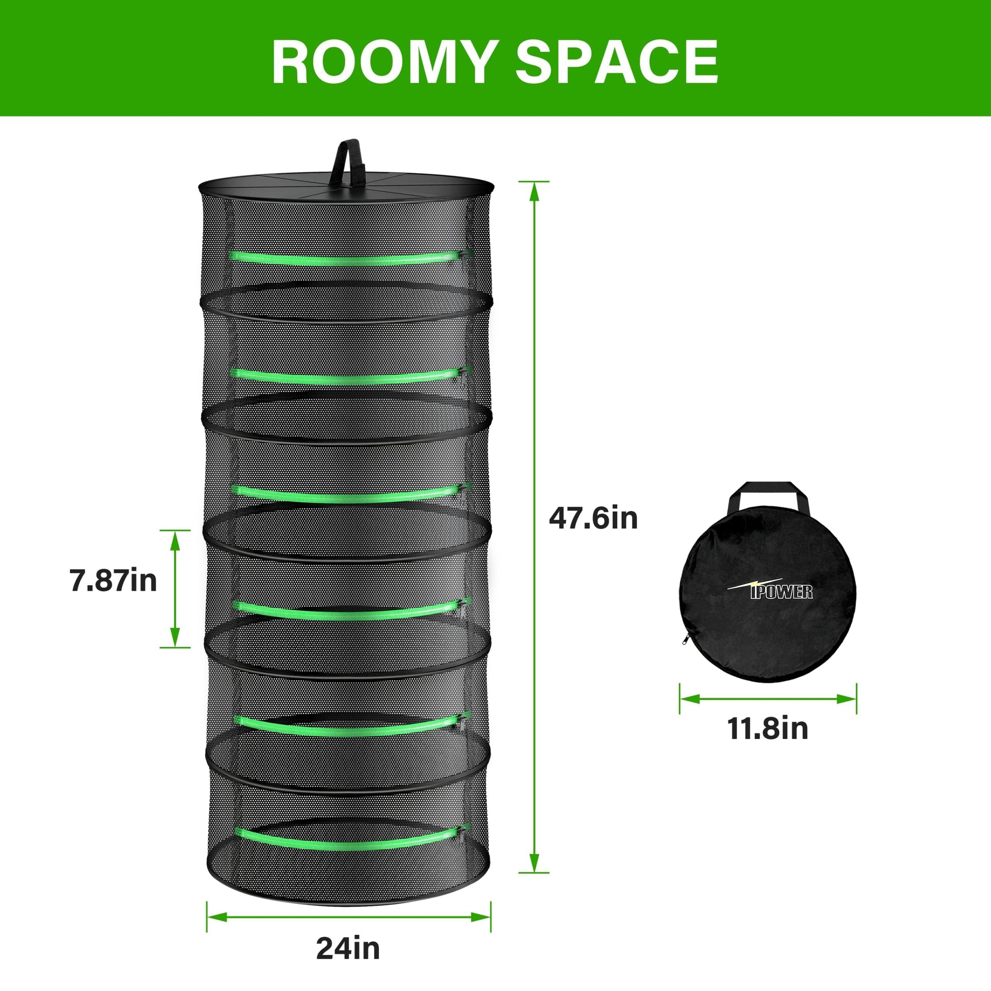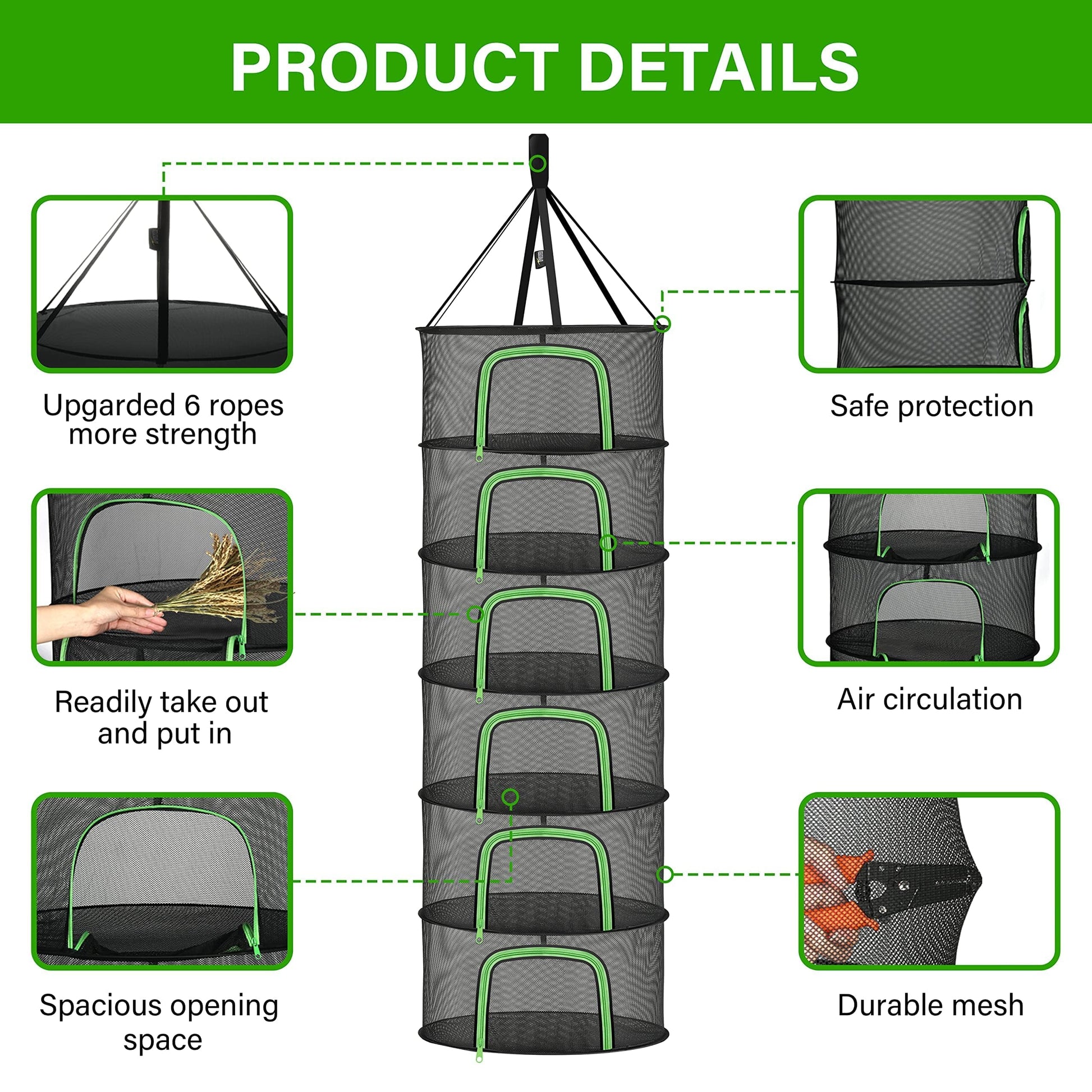 - Item Size: D24xH59.04 inch, 9.84 inch height of each layer, 6-layer, 2Ft wide; appropriate size to keep a great ventilation for drying process; strong wire frames, collapses flat for space-saving storage in accessory pouch.