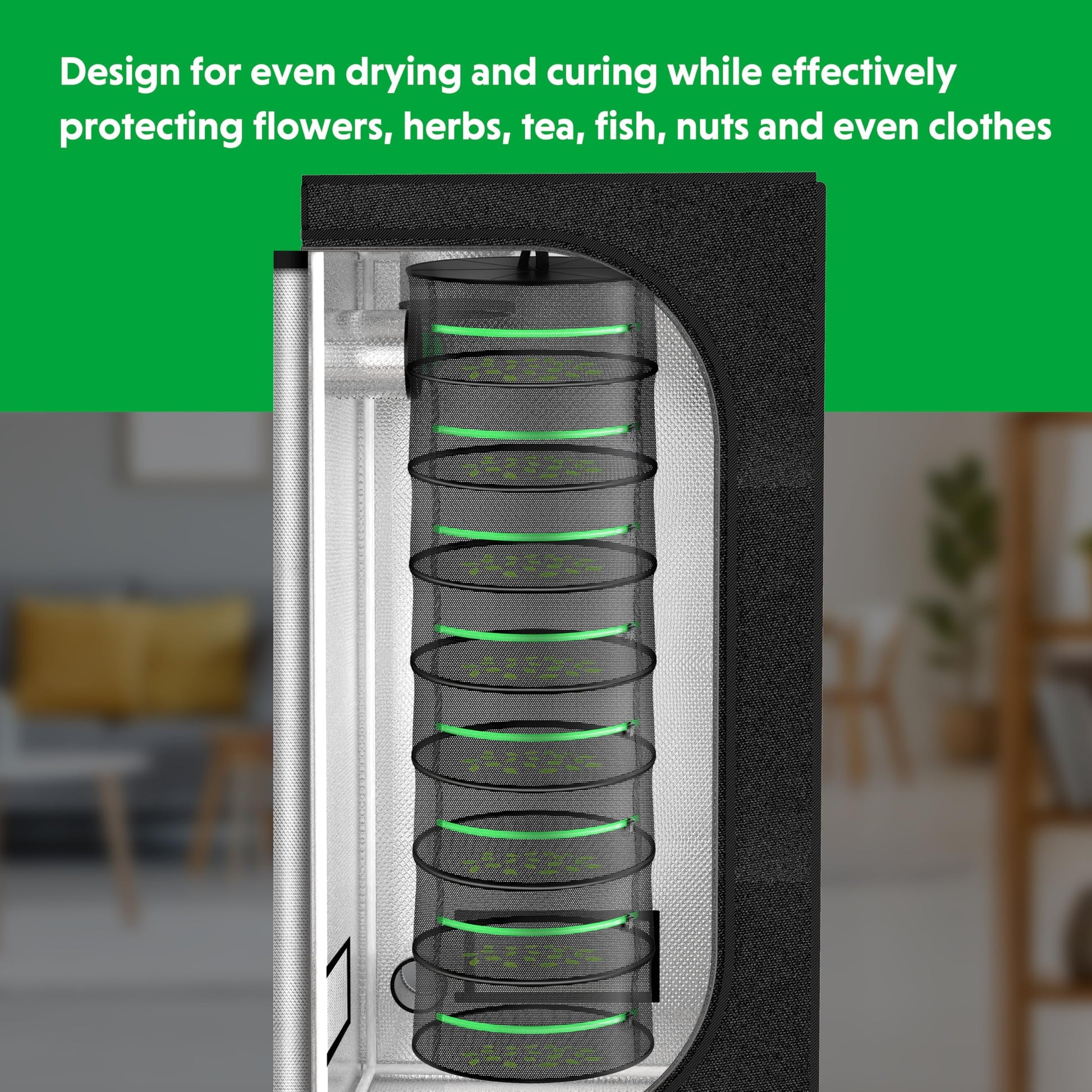 - U-Shape zippered design: Wider and higher opening design allowing more convenience putting in and taking out your harvest from the drying rack; high quality zippers with strong zipper sliders and smooth slide, bigger slider, easy to operate.