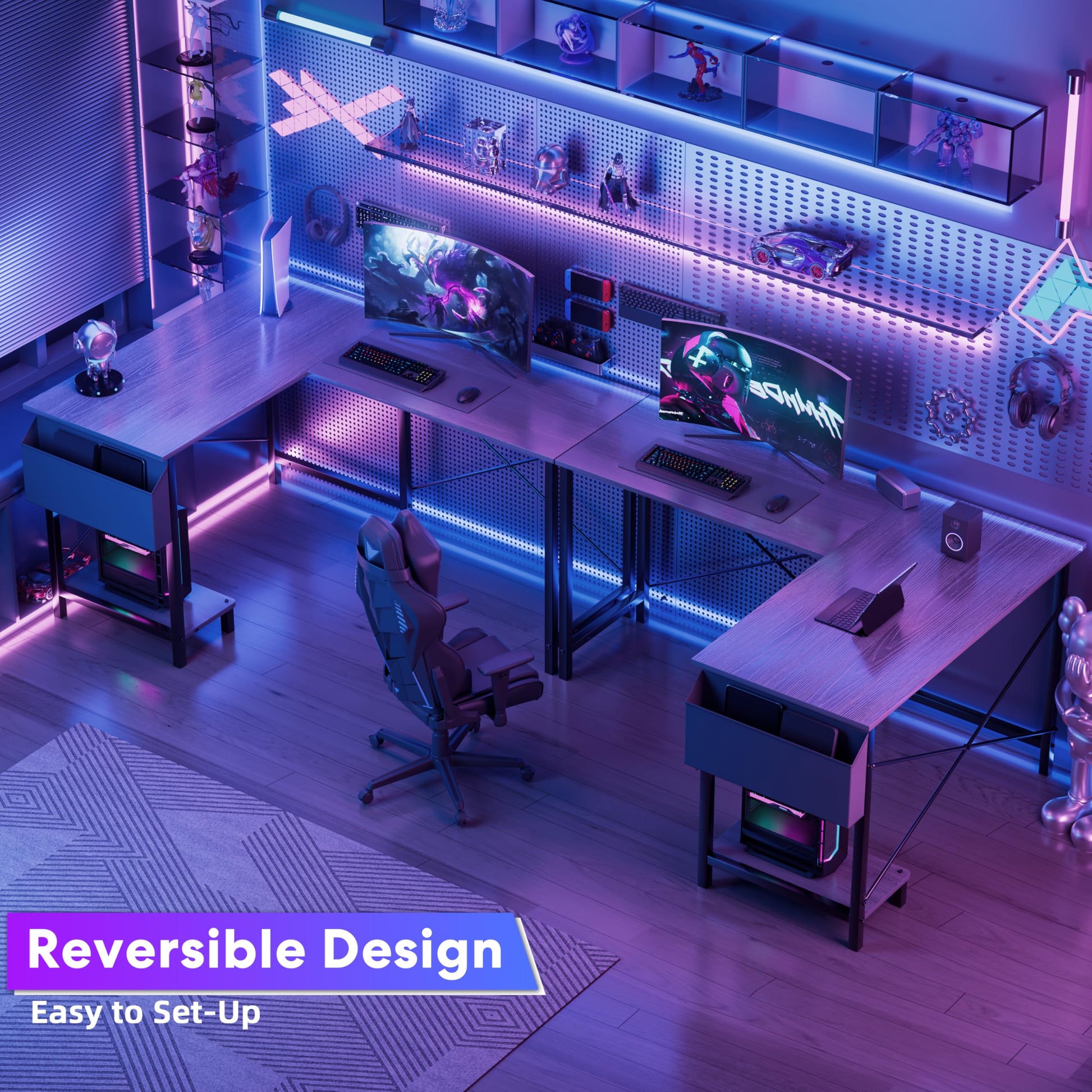YSSOA 50" L Shaped Gaming Desk with Reversible Corner - Home Office Computer Desk with Wood Top, Metal Frame, CPU Stand & Storage Bag for Small Space, Gaming Room