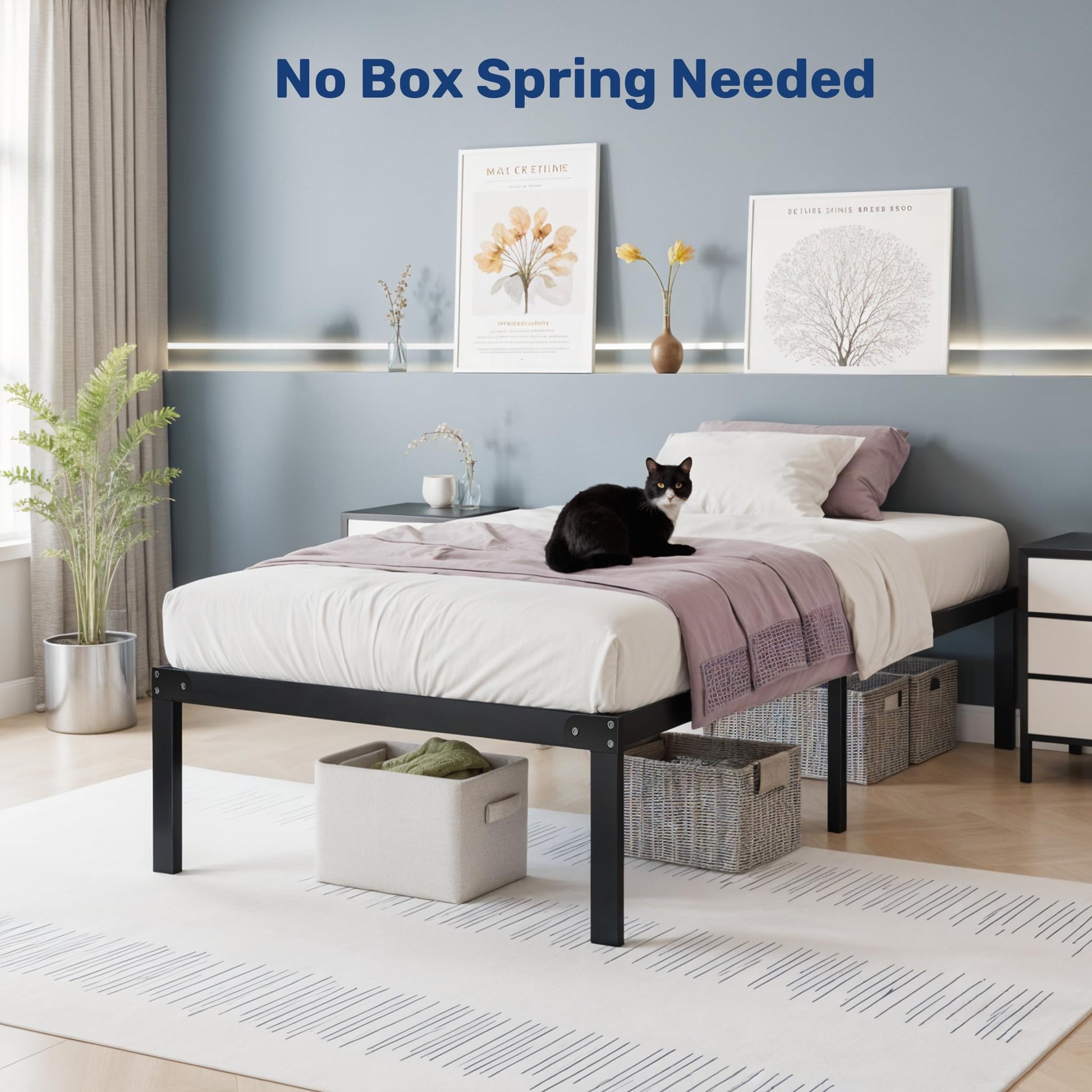 - Fashionable and Beautiful: The bed frame is made of high-strength steel, clean lines and minimalist design of the bed frame contribute to a modern aesthetic, ideal for various bedroom styles, and it provides enough space for storage under the platform bed
