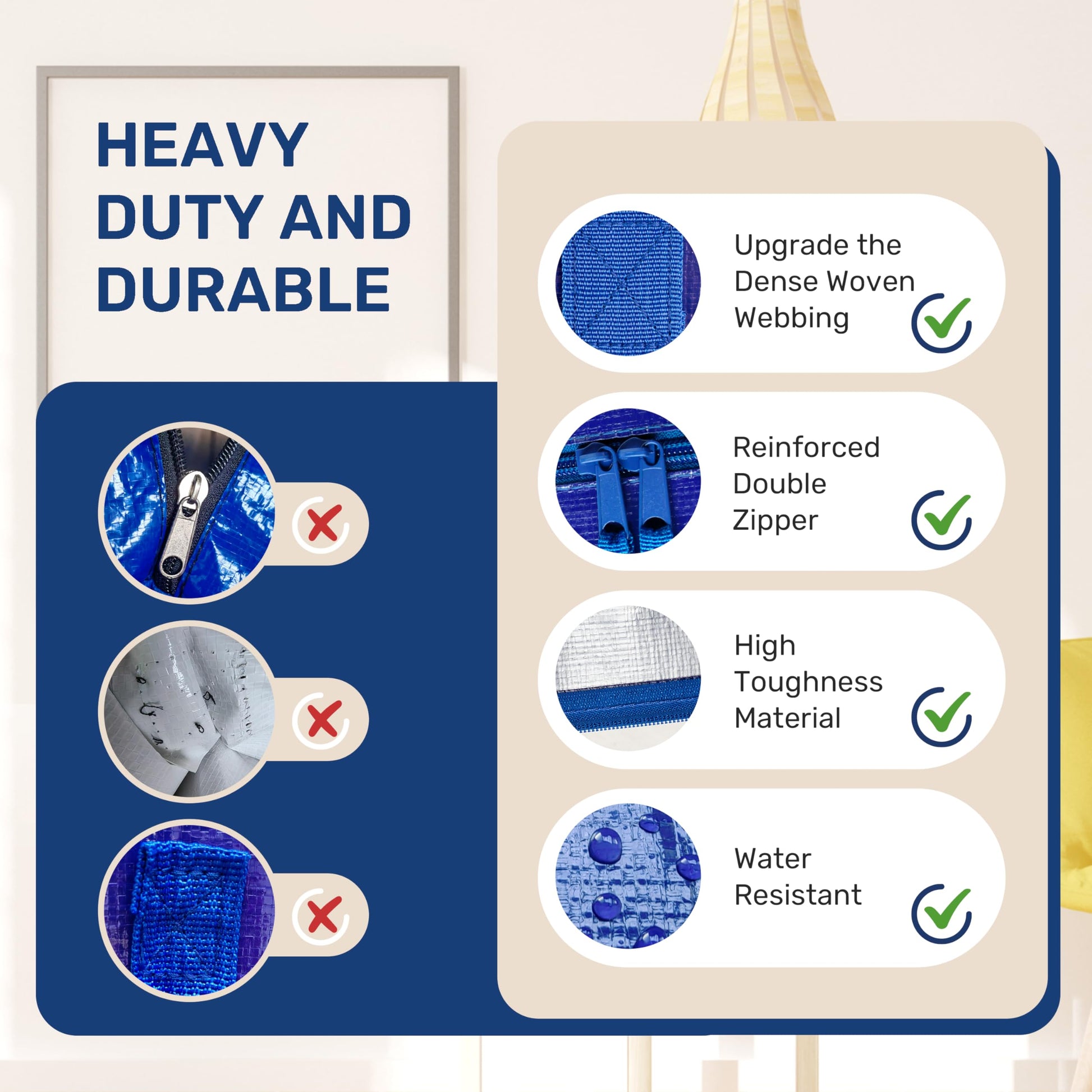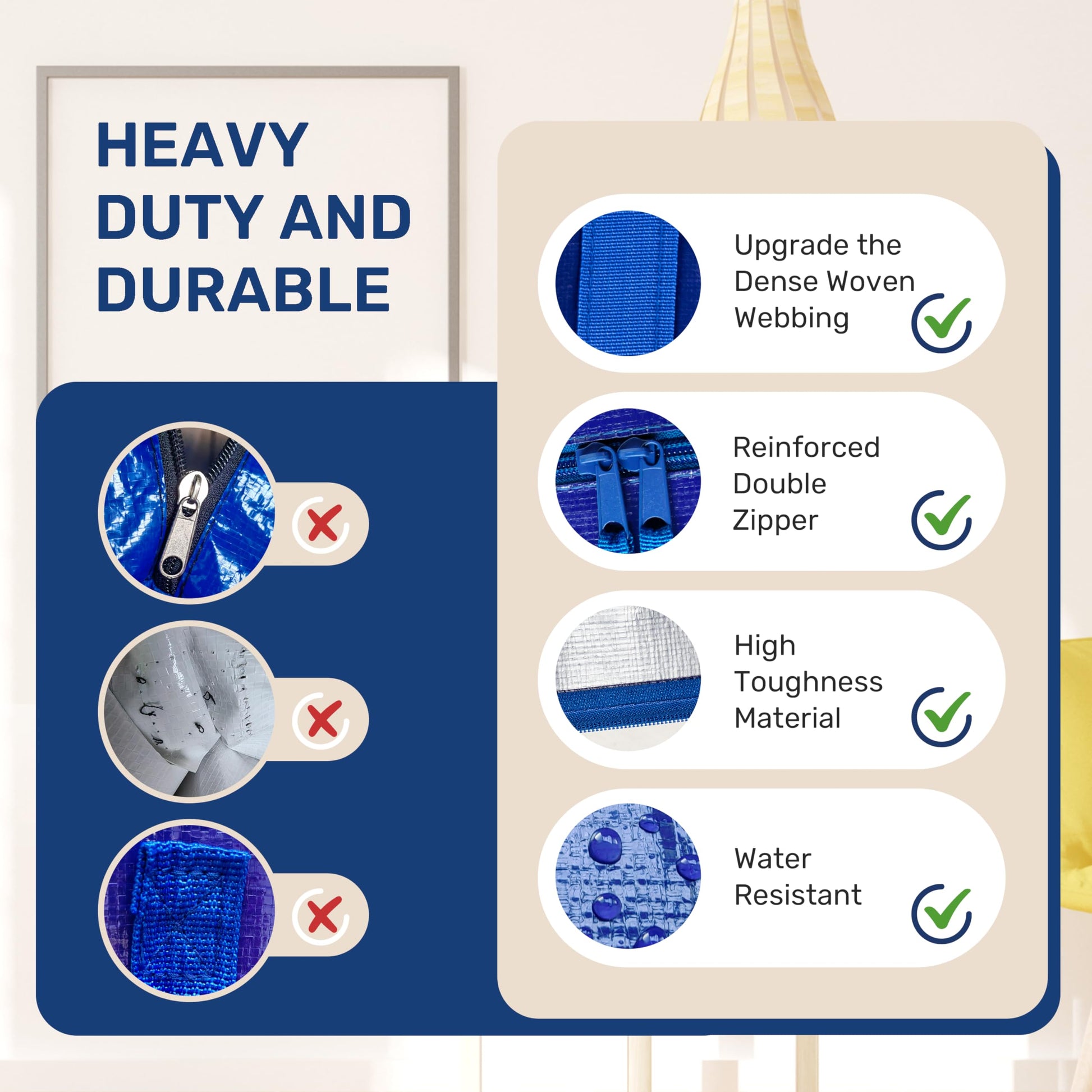 - Quality Upgrading: Wide webbing reduces hand strain. Upgraded sewing process & Reinforced zippers ensures durability—no tears or punctures. Built with premium PE materials for durability