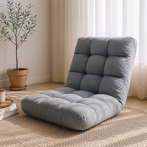 YSSOA Floor Chair Folding with Back Support Convertible Comfy Chair Memory Foam Padded Sleeper Recliner Sofa Chair Gaming Chair Floor for Bedroom Working Meditation Reading Adults Kids Grey