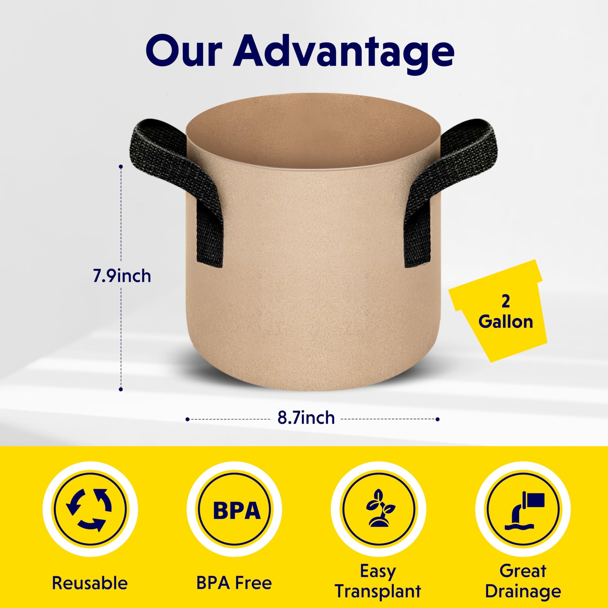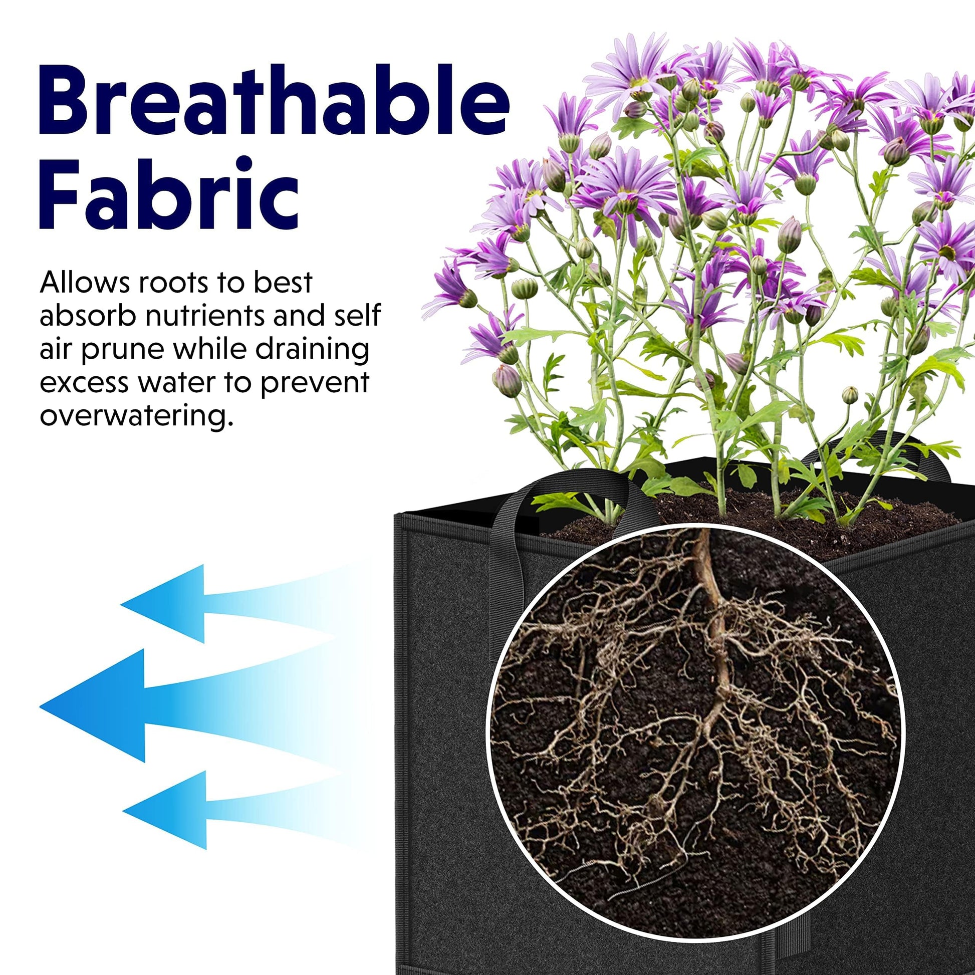 - Easy to transplant: The durable bag with double stitching handles allows you to move easily and safely from indoor to outdoor. Decreased risk of transplant shock