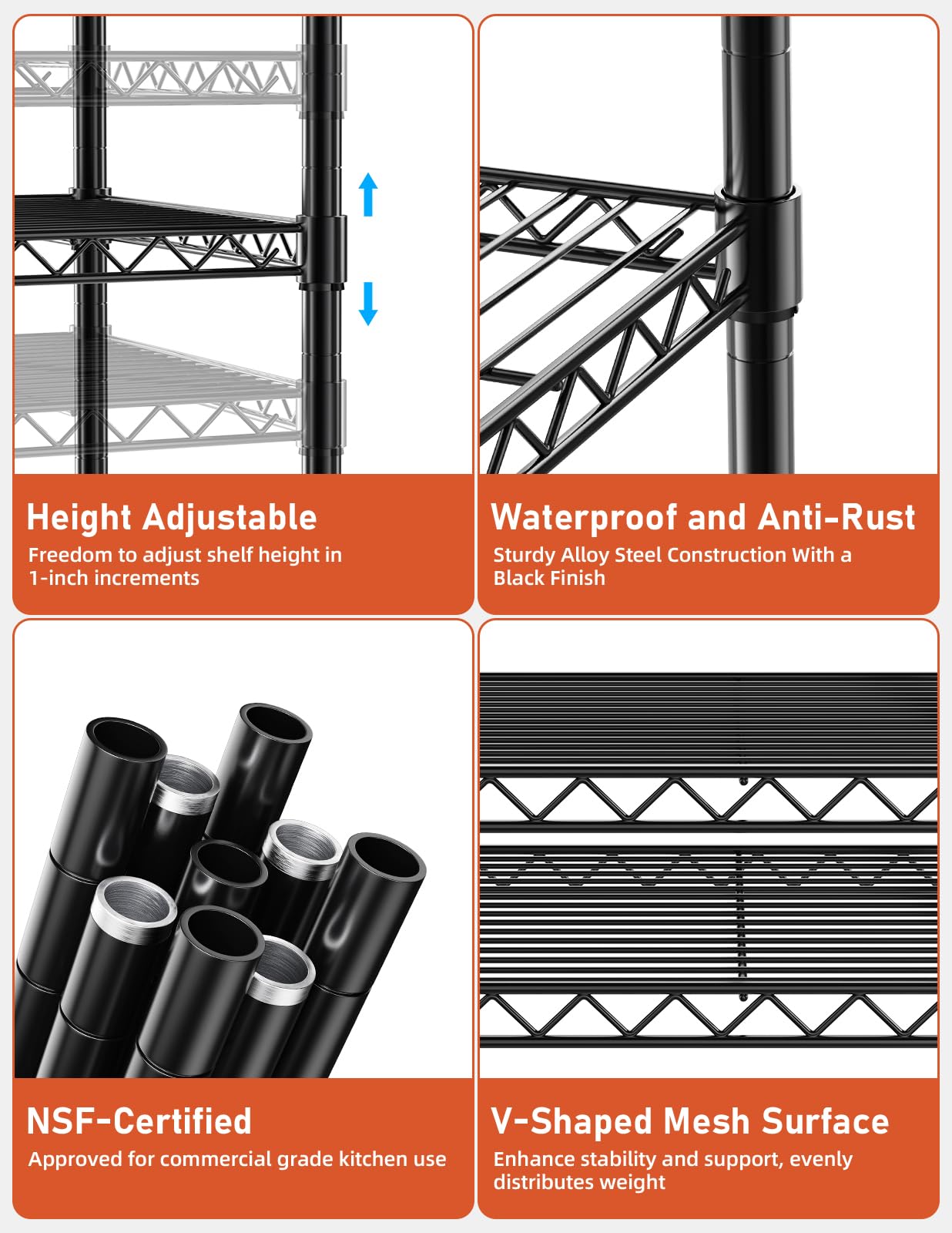 - Adjustable Design with Wheels - Features durable steel construction with adjustable leveling feet and four wheels for mobility. Shelves adjust in 1-inch increments for customizable storage