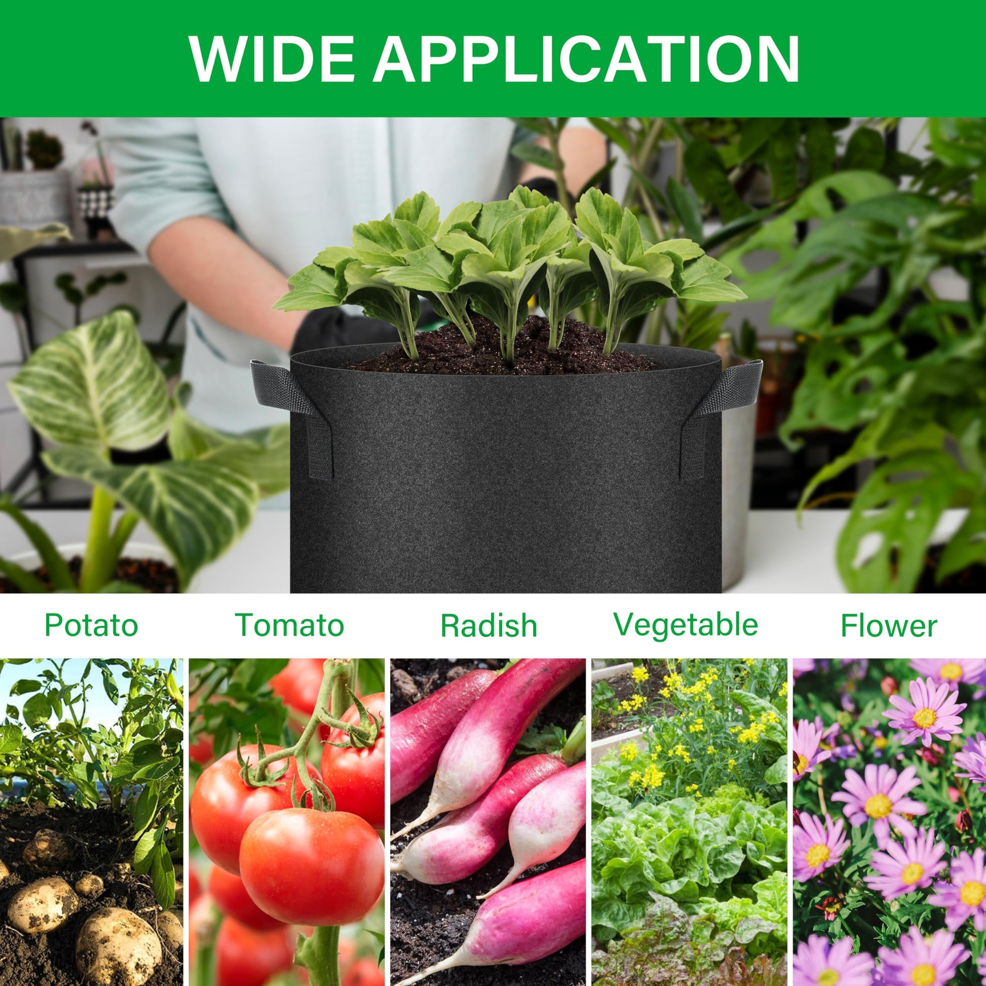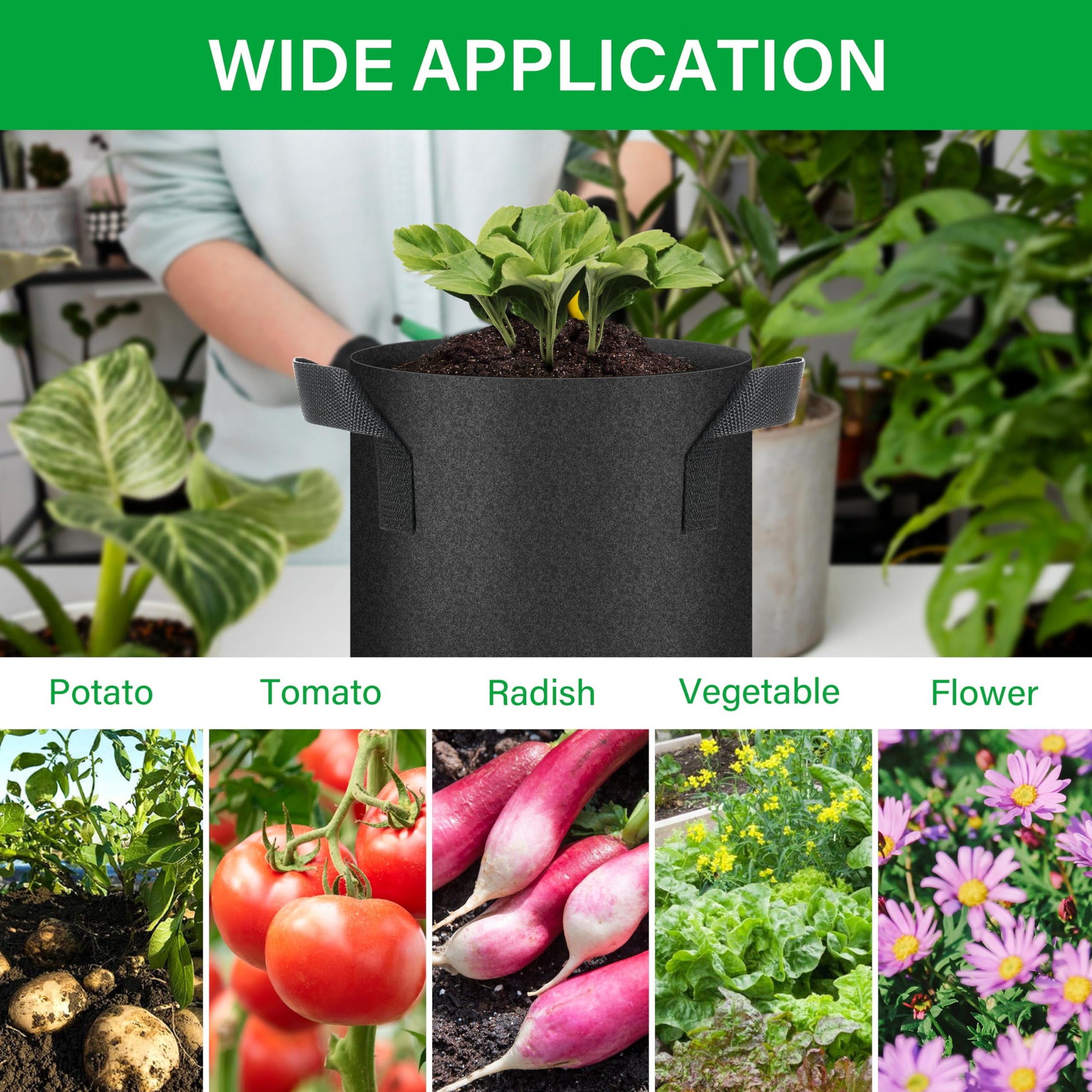 - Easy to move: Wide and reinforced handles ensure it easy and safe to transport the bags filled with soil and plants. Grow bags are perfect to use at patios, gardens, balconies, sunrooms and any indoor/outdoor space