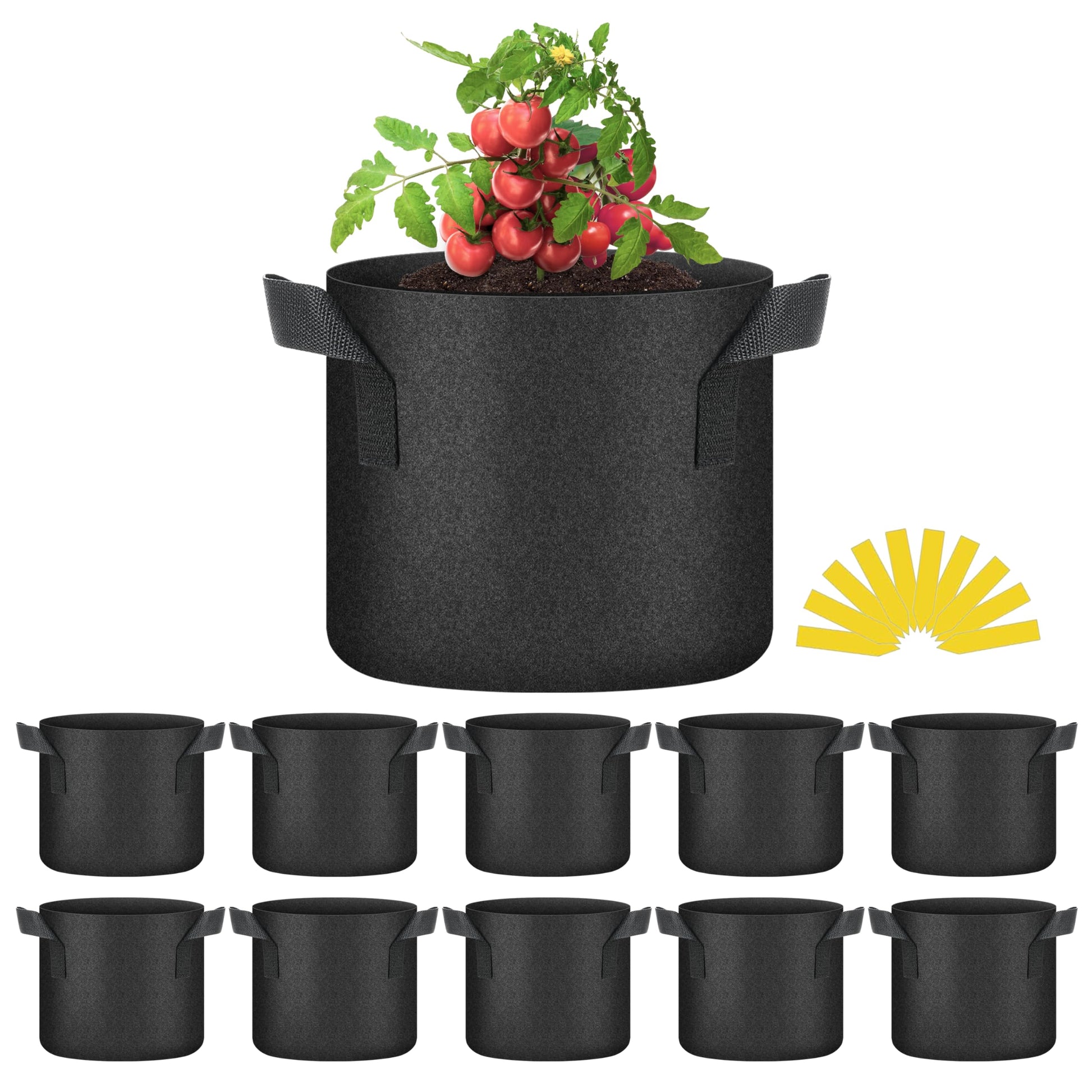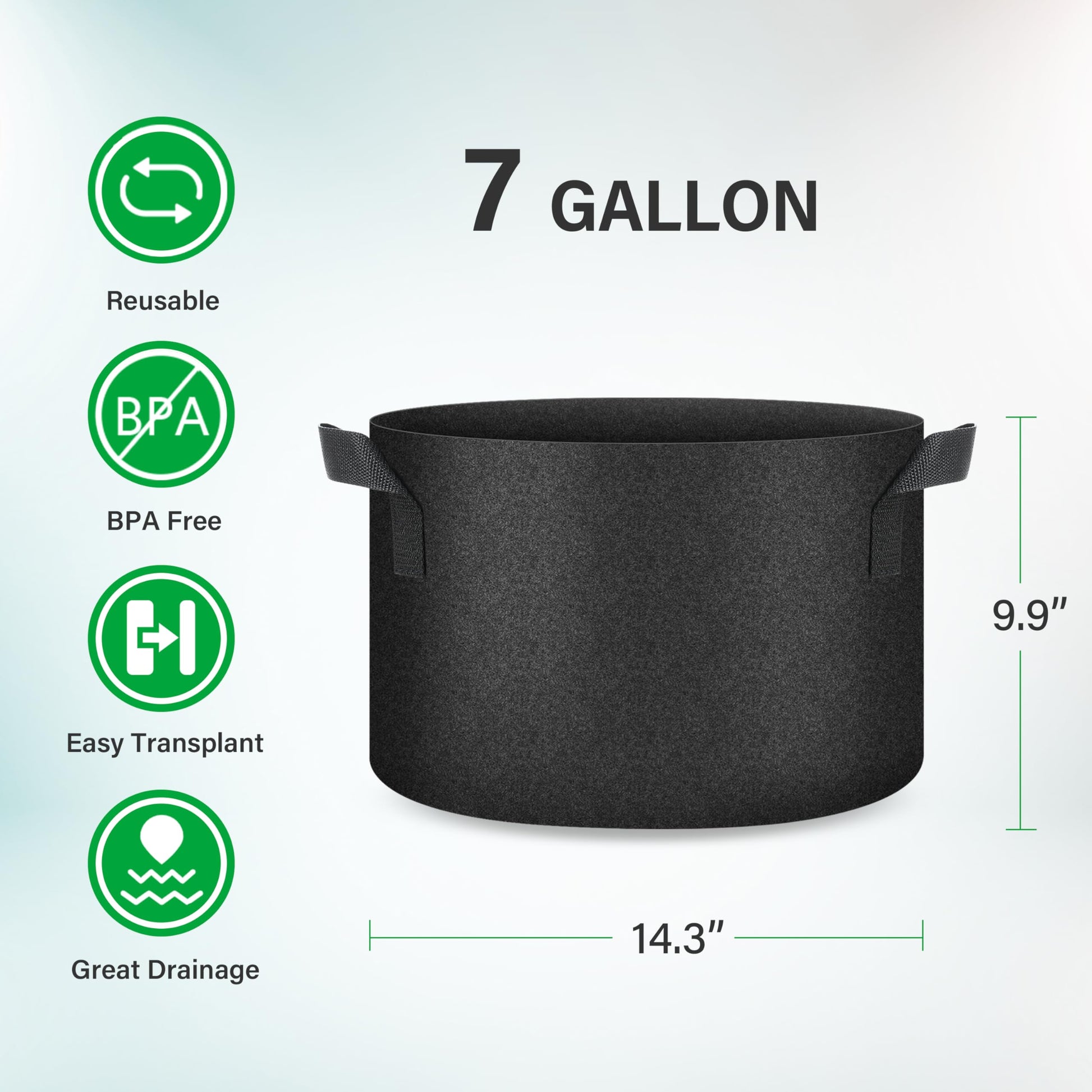 - Enjoy gardening easily: Grow more in less space but multiple varieties in grow bags. 5-pack 7 gallon fabric grow bags. Pot dimension: Diameter 14.3 inches, height 9.9 inches