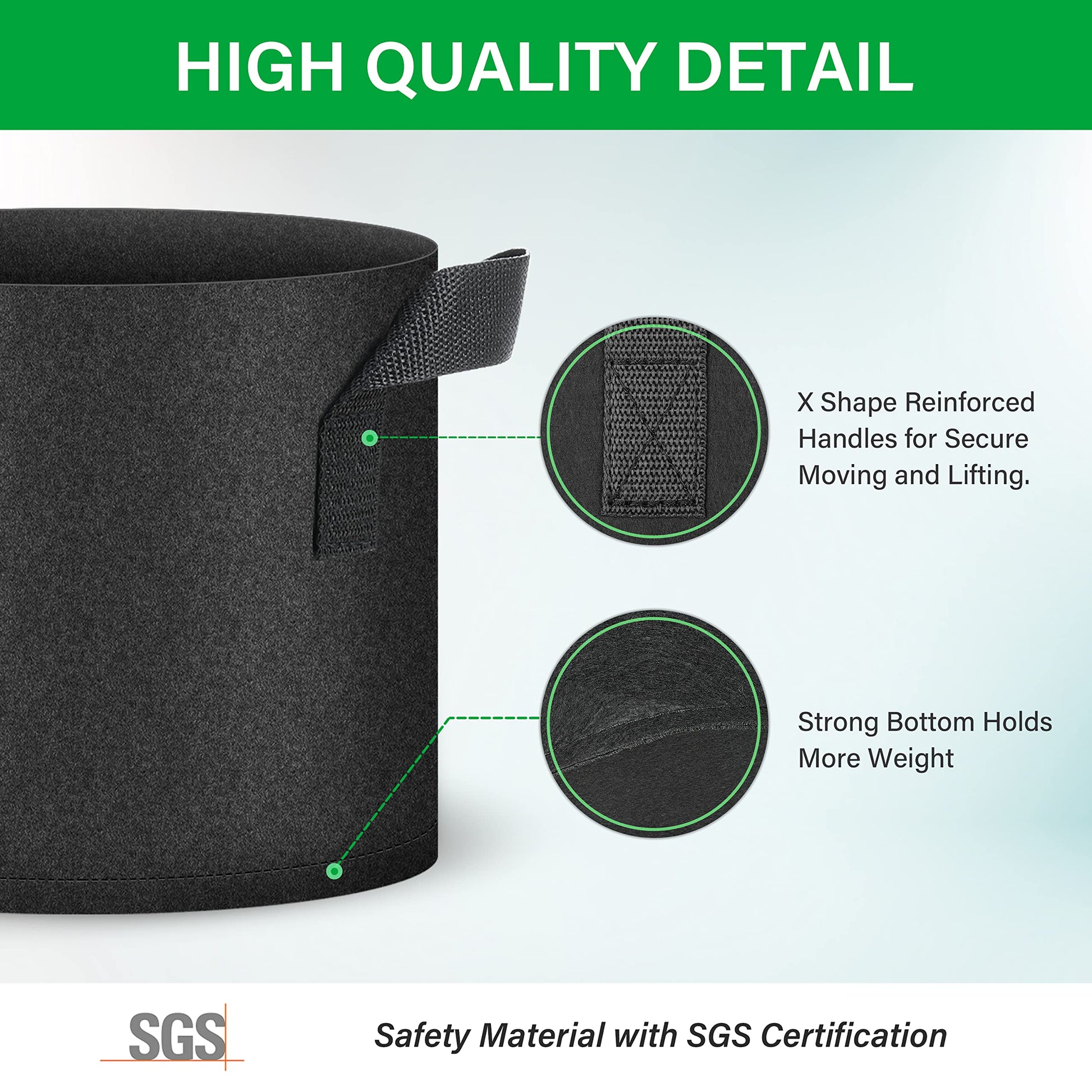 - High quality material: Made of breathable and durable non-woven fabric, BPA-free. Fabric bags ensure good ventilation to prevent excessive moisture, provide more oxygen and improve plant growth by air pruning roots