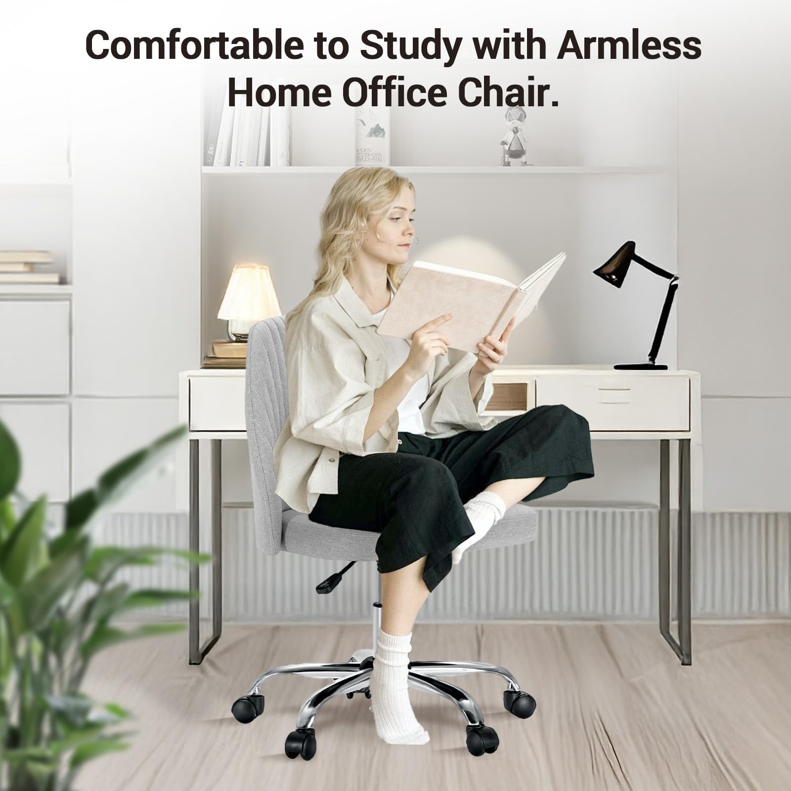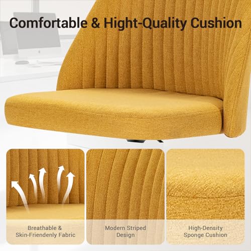 YSSOA Office Desk Chair with Back and Wheels Computer Fabric Chair Armless Adjustable Height Comfy Vanity Chair with Swivel Rolling Home Chairs