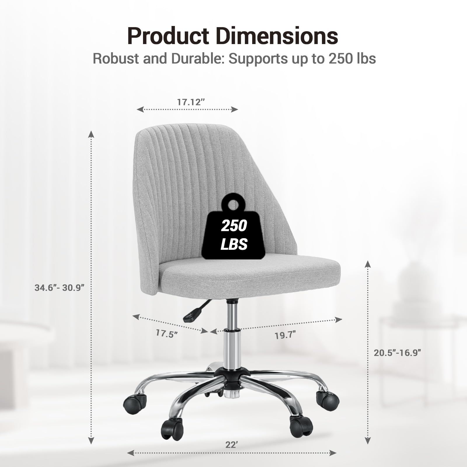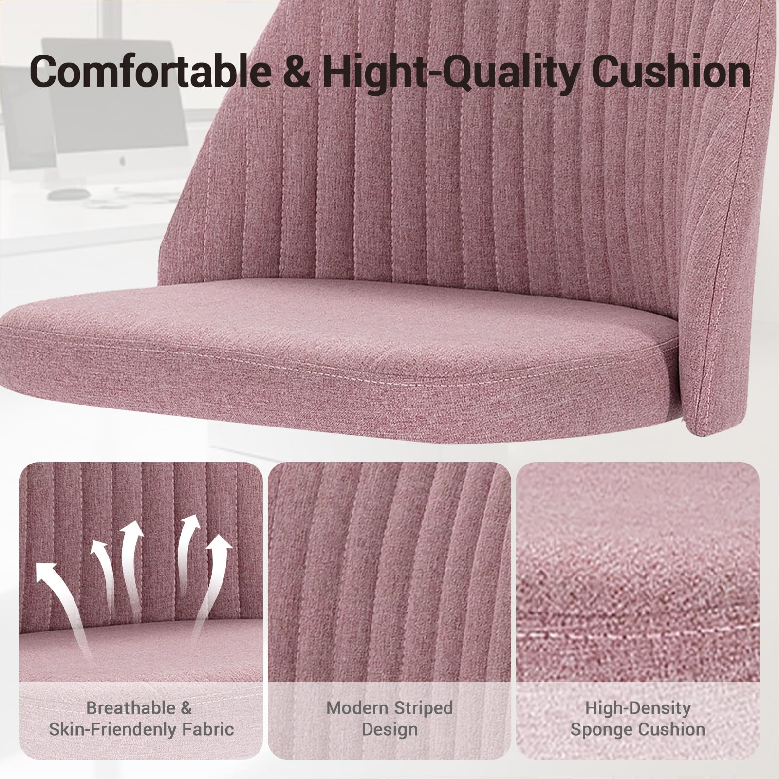 - 【Modern and Durable】: This computer chair’s cute and stylish look, combined with its trendy fabric exterior, adds a touch of charm and modernity to any space. Built to last, this desk chair with wheels has a solid and sturdy frame that is capable of supporting up to 250 pounds of weight. The materials used are carefully selected for their durability and longevity, making it a great investment for any home or office.