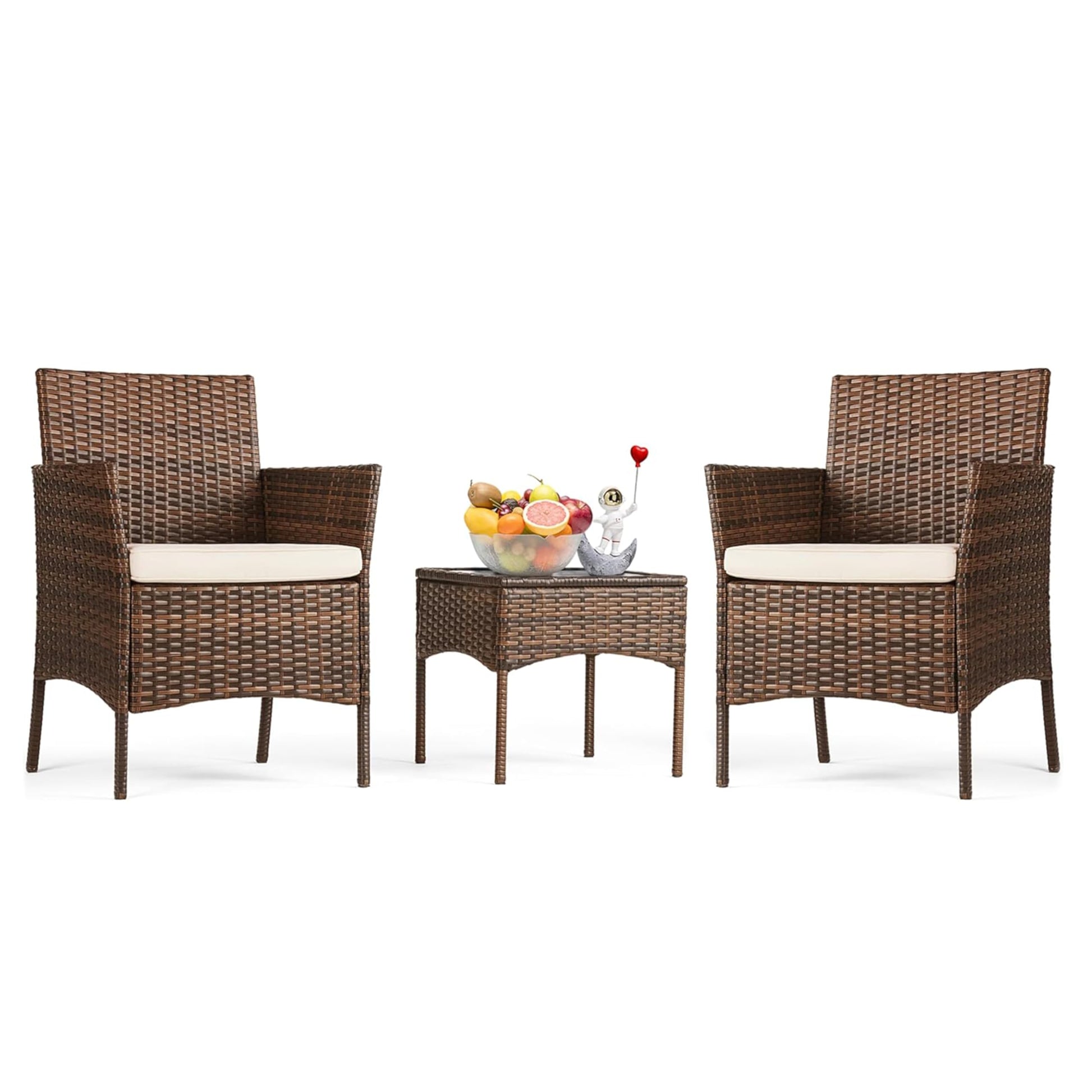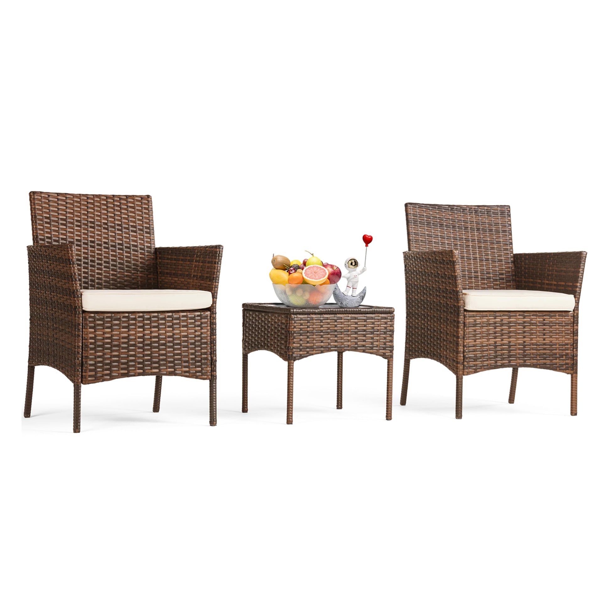 - Weather resistant: No worry to split, crack, fade, rot and deteriorate. This patio set features a high-quality tempered glass top to wear resistance. All-weather rattan ensures durability to outdoor elements like sunlight, water and abrasion