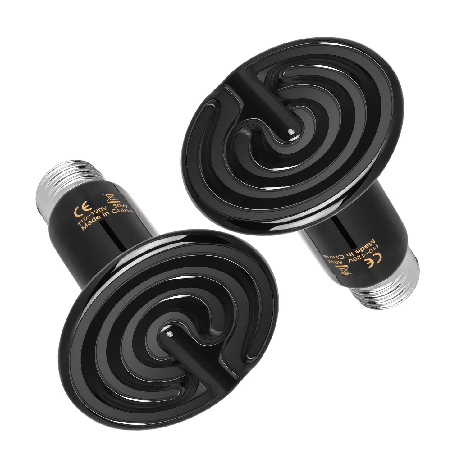 YSSOA Reptile Heat Lamp, Ceramic No Light Emitting Heat Bulbs, Suitable for Snake/Lizard/Spider, Incubating Chicken and Plant Growth