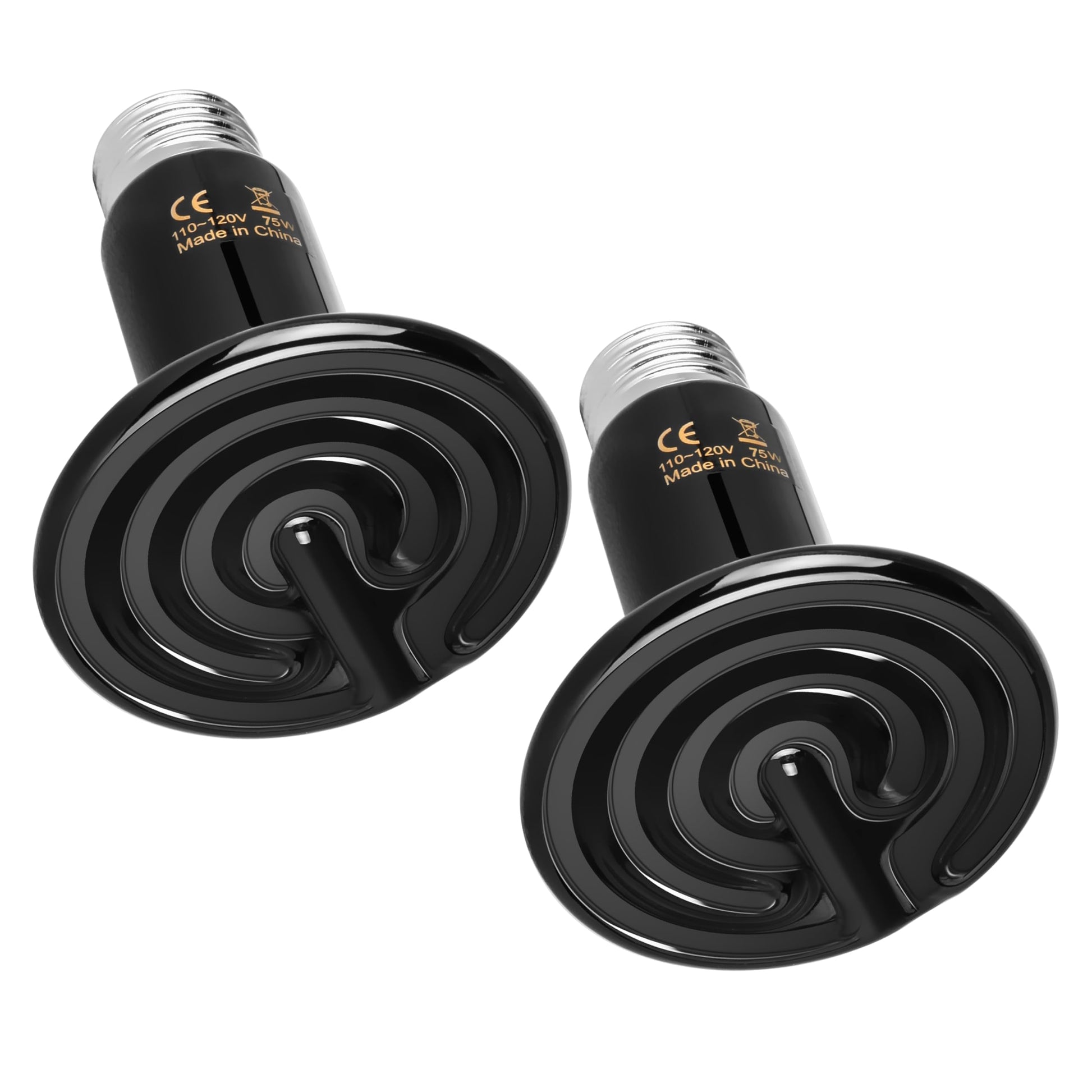 - No Light Emitting: The heating bulbs only generates heat and don't emit visually light, which won't disturb your pet's sleep cycle. Specifications: 150W; 110-120V; use in standard E26 lamp base; 75mm diameter, 100mm length