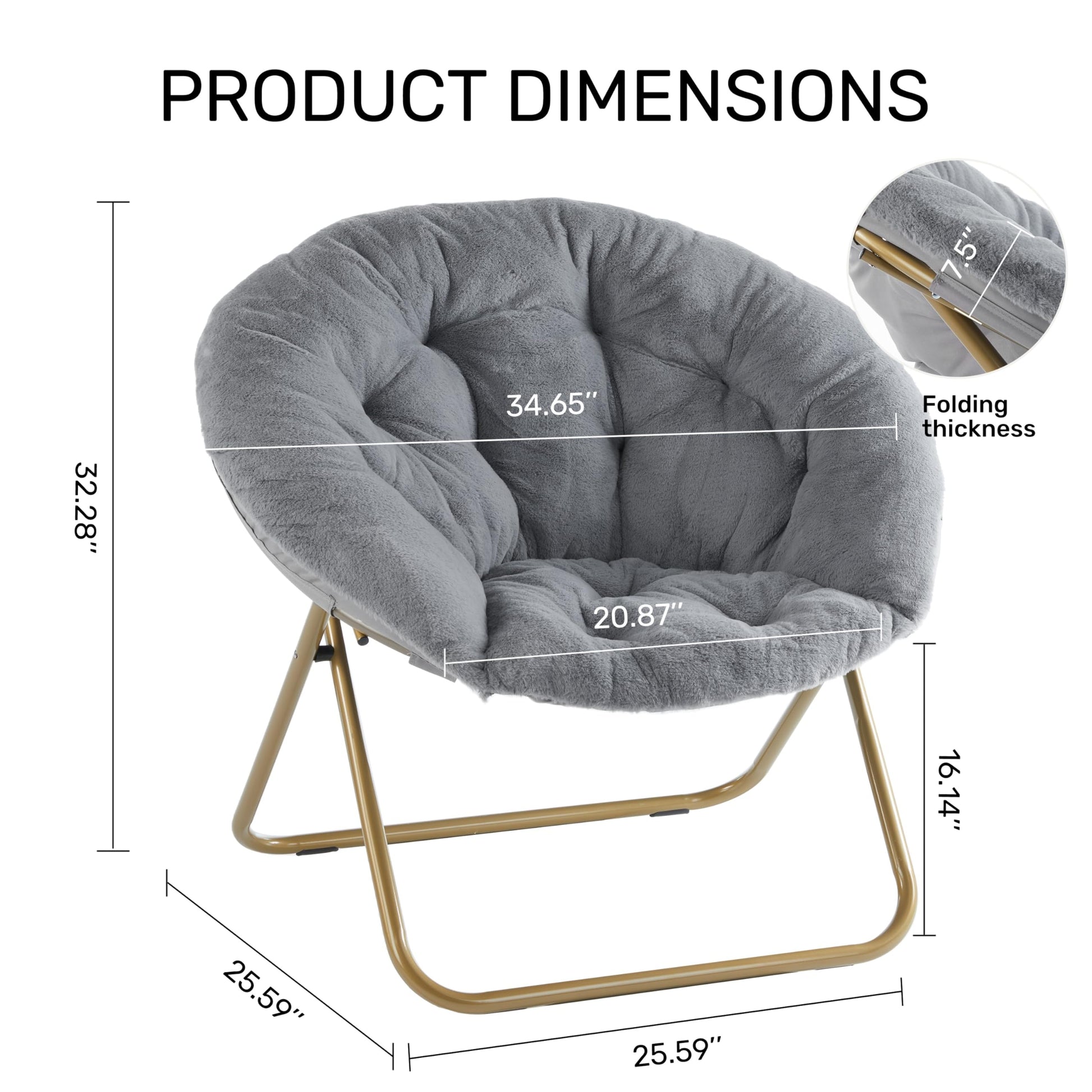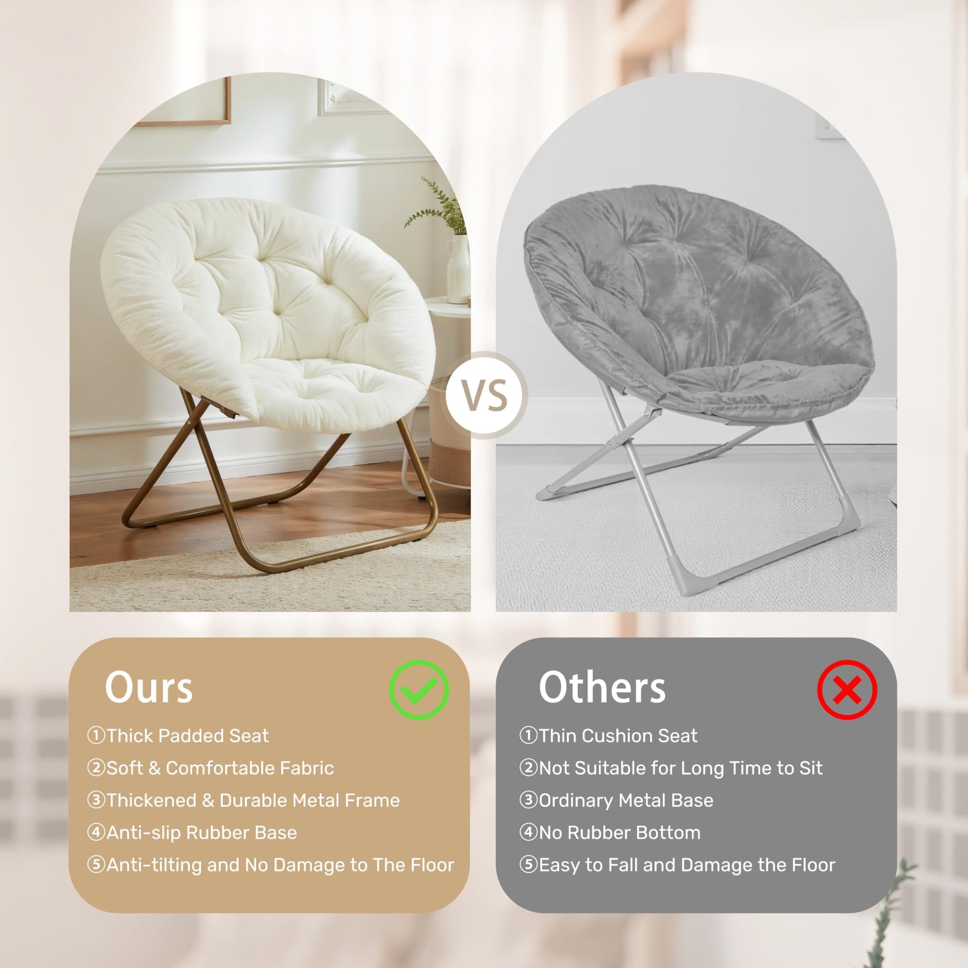 YSSOA Saucer Chair, Comfy Faux Fur Chair for Bedroom, Saucer Chairs for Adults, Teens, Round Shaped Moon Chair with Foldable Metal Frame