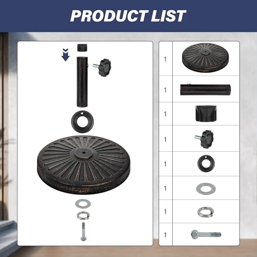 - Easy to Install: Just choose the right size of the umbrella rod put into the base, tighten the knob, and then tighten the knob at the bottom, your umbrella will be firmly attached to the base.
