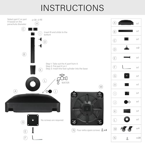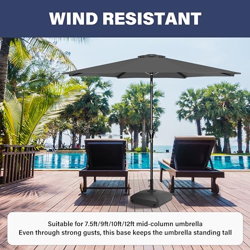 - Water or sand filling: Base can be weighed down with up to 50 pounds of sand or water, and can be easily transported when emptied. Notice: Water and sand are NOT included. Suggestion: Use the base with patio table