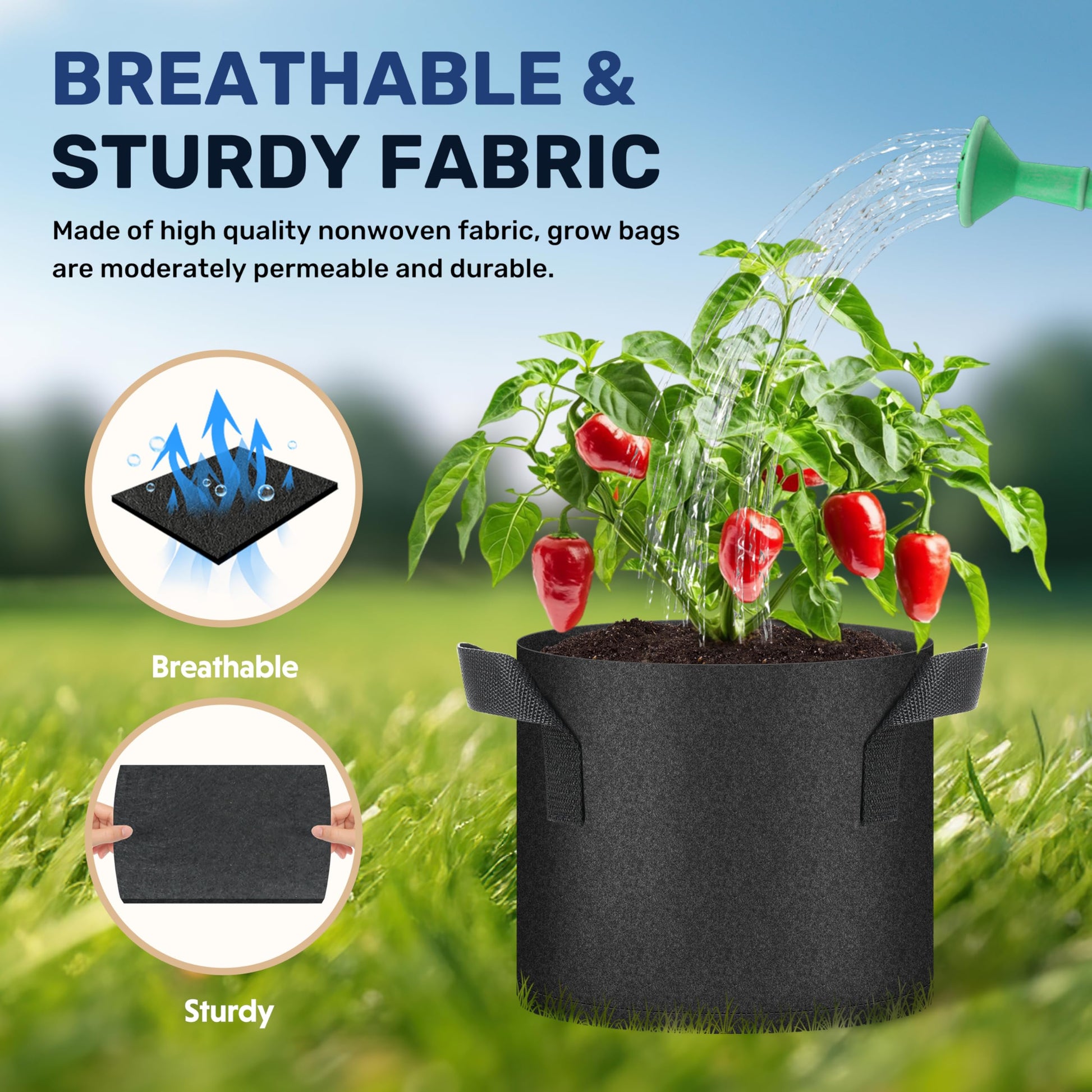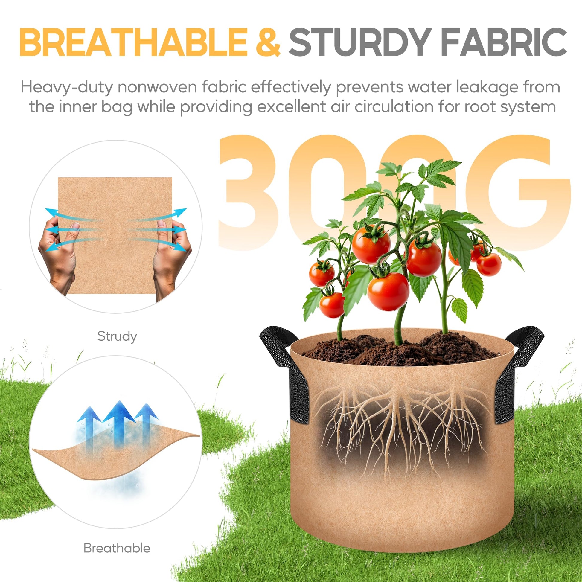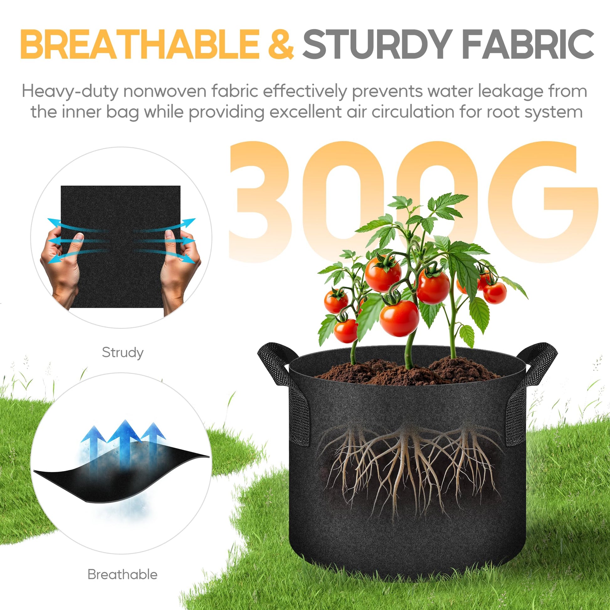 - Premium Heavy-Duty Material: Crafted with tear-resistant non-woven fabric and high-strength weaving technology, these plant grow bags offer exceptional durability while remaining lightweight. Perfect for tomatoes, potatoes, vegetables, and fruit trees.