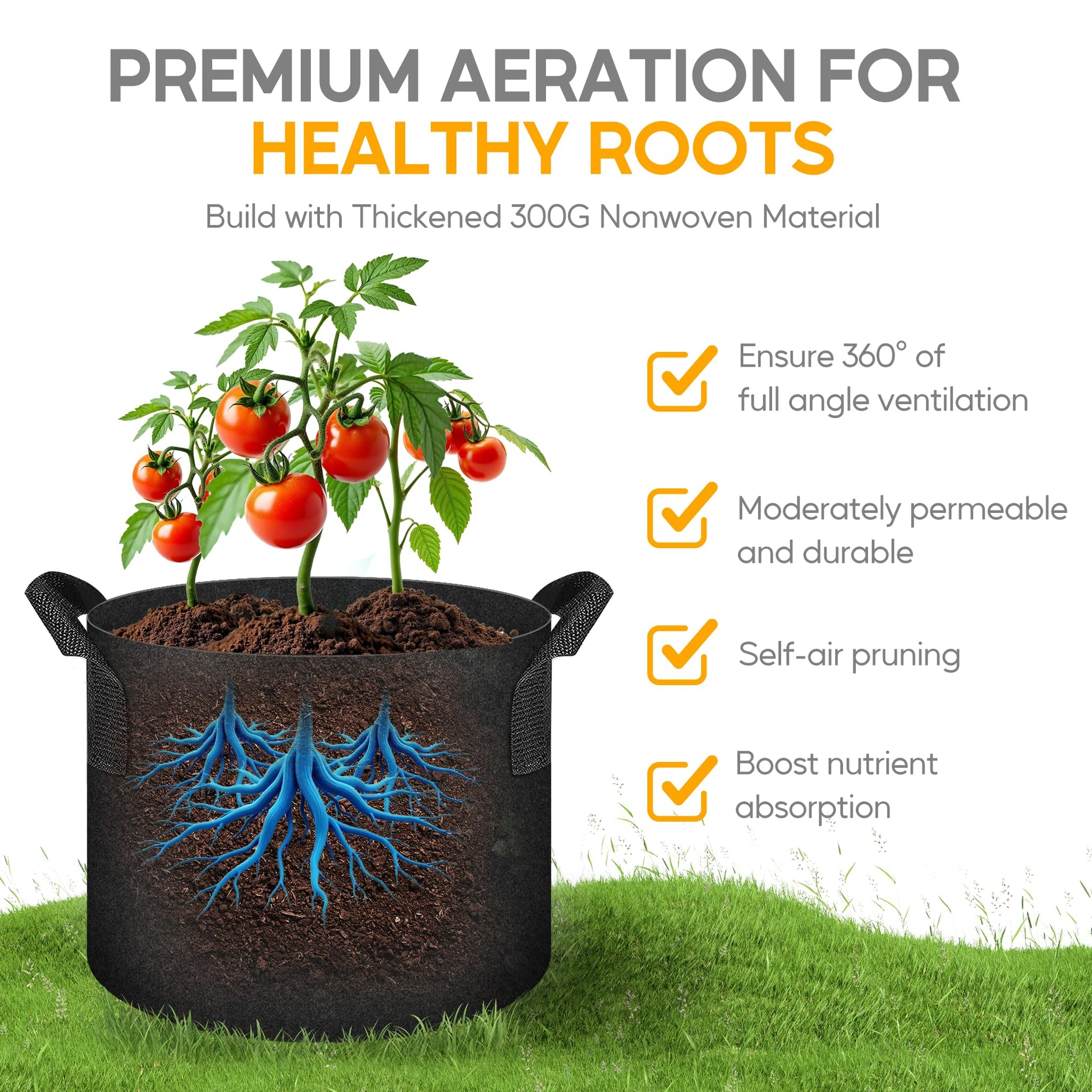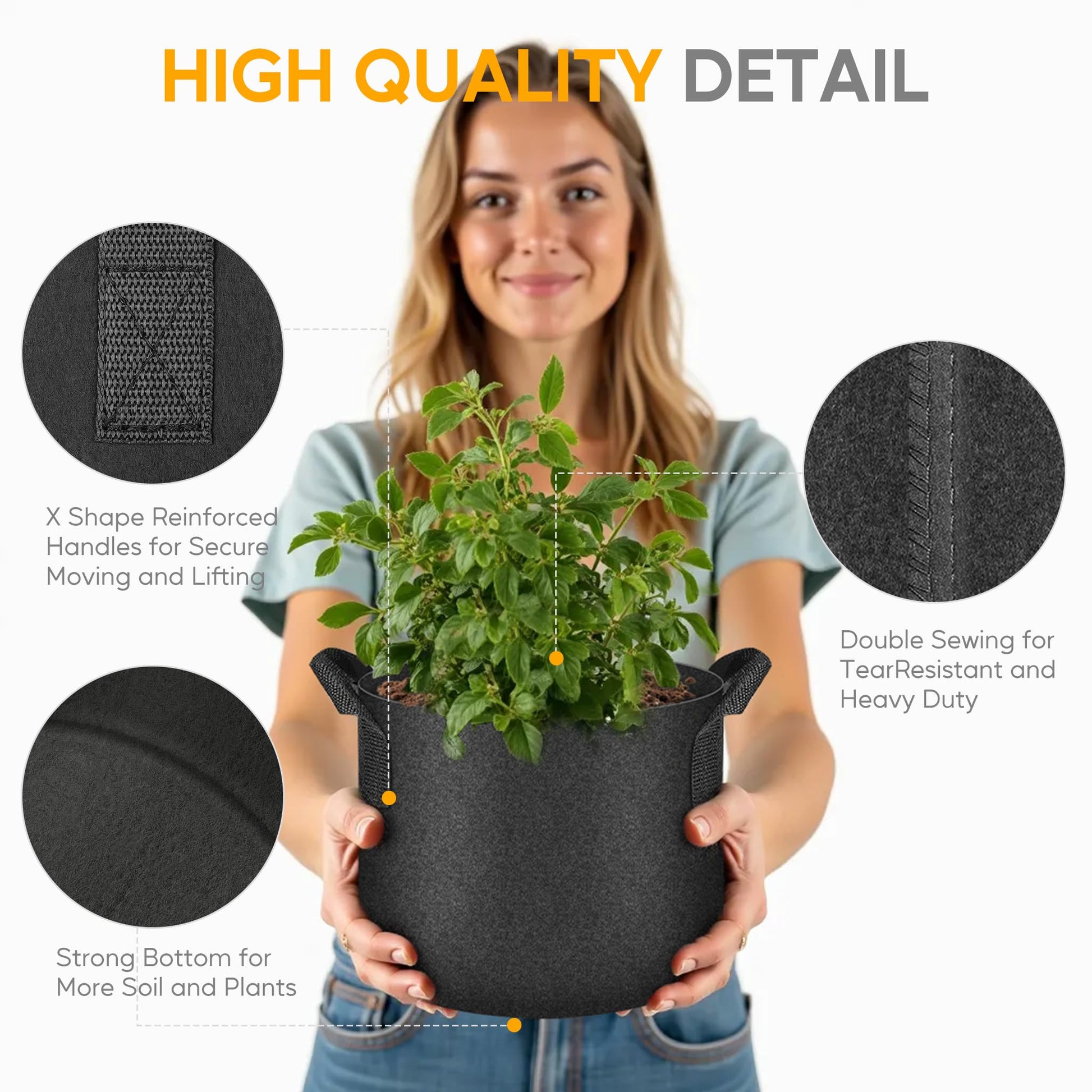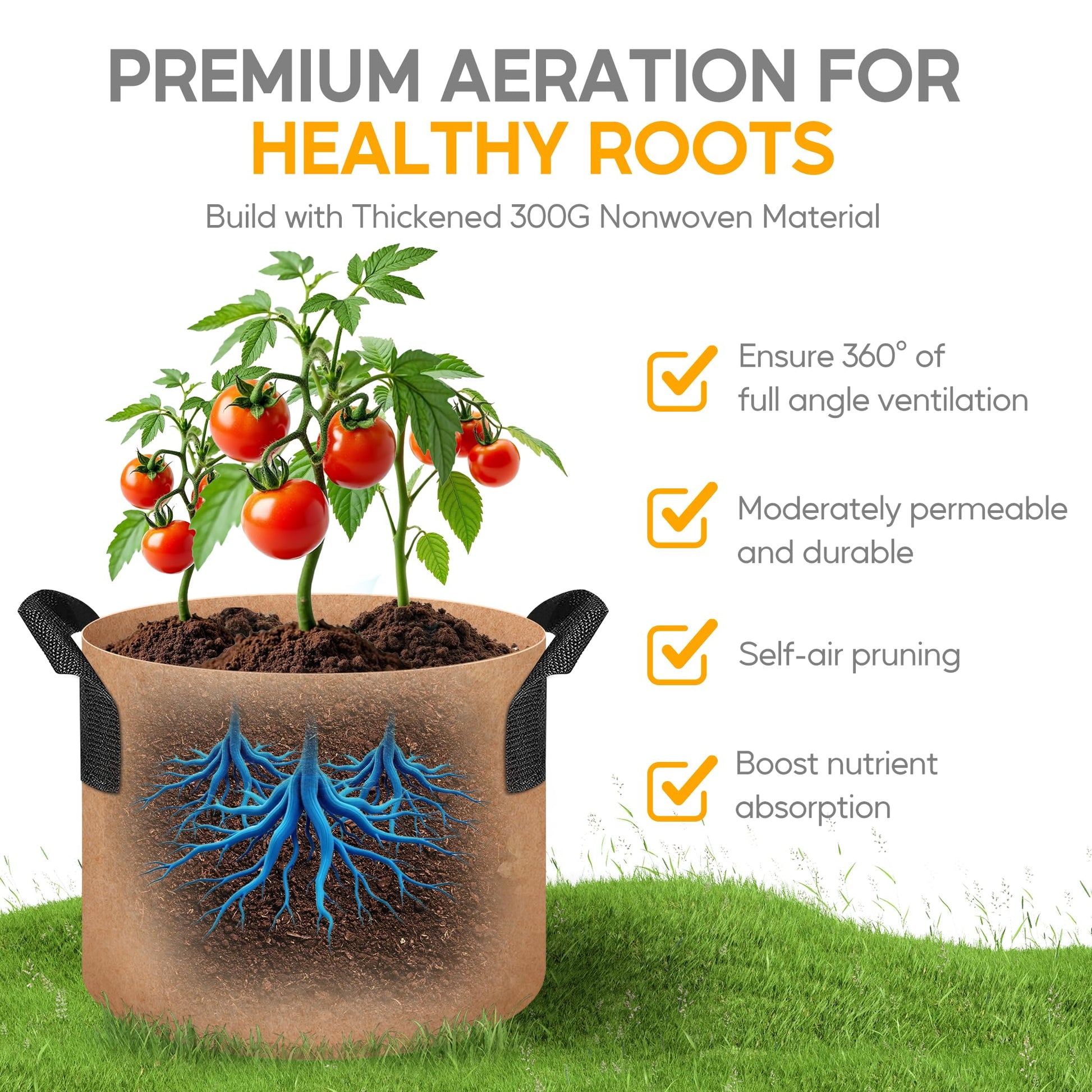 - Premium Heavy-Duty Material: Crafted with tear-resistant non-woven fabric and high-strength weaving technology, these plant grow bags offer exceptional durability while remaining lightweight. Perfect for tomatoes, potatoes, vegetables, and fruit trees.